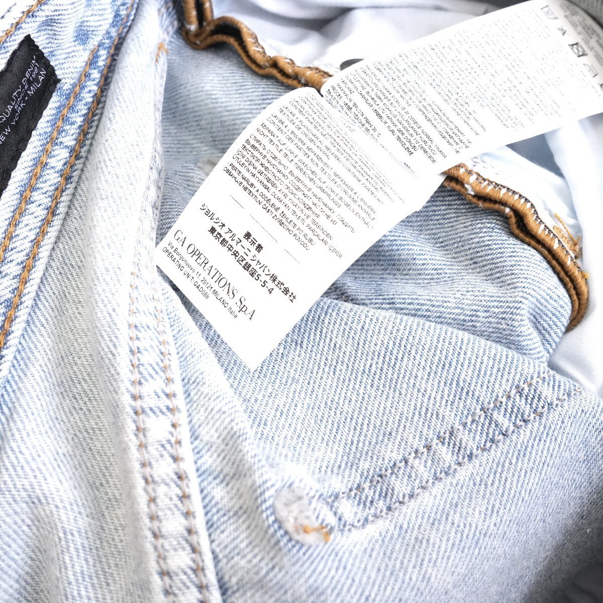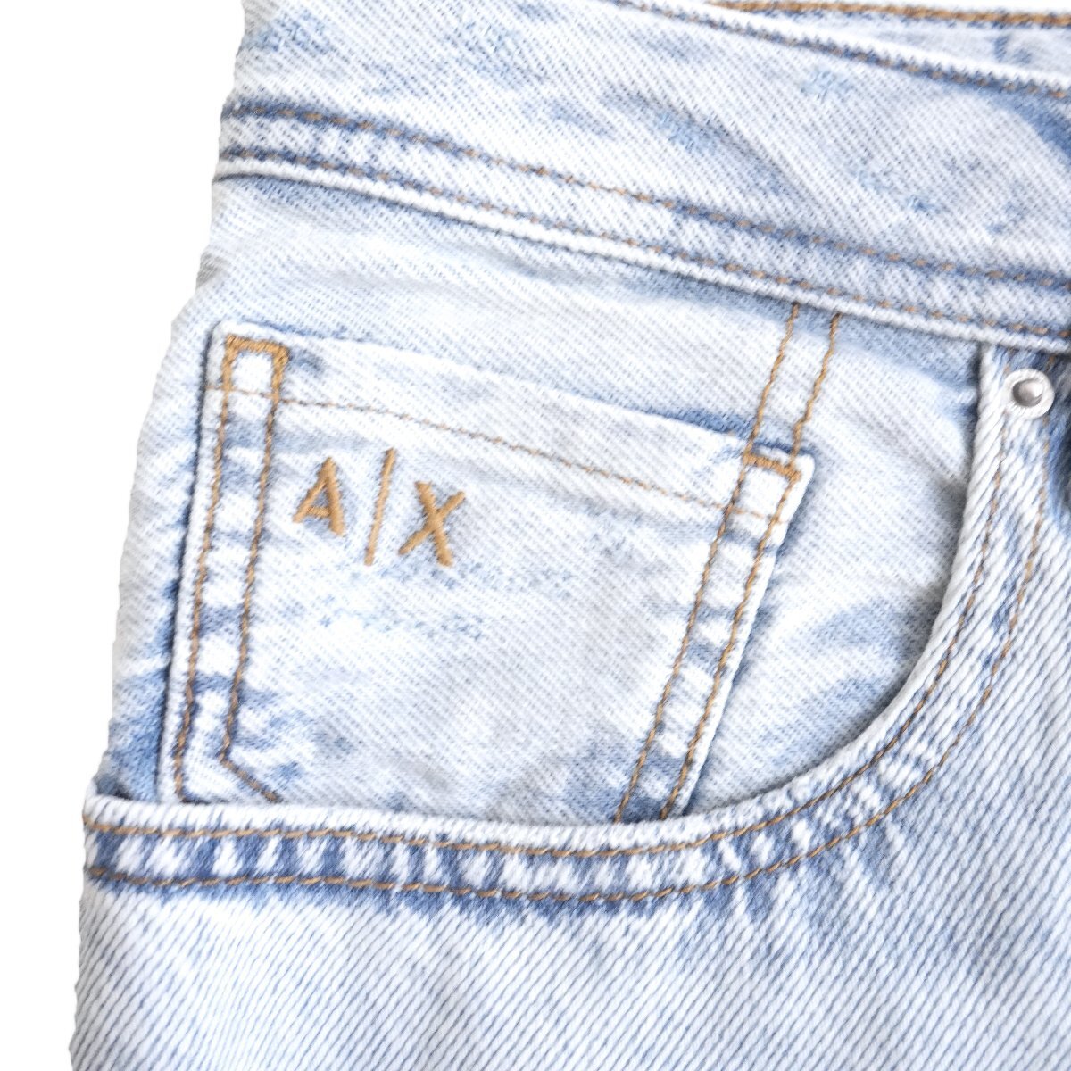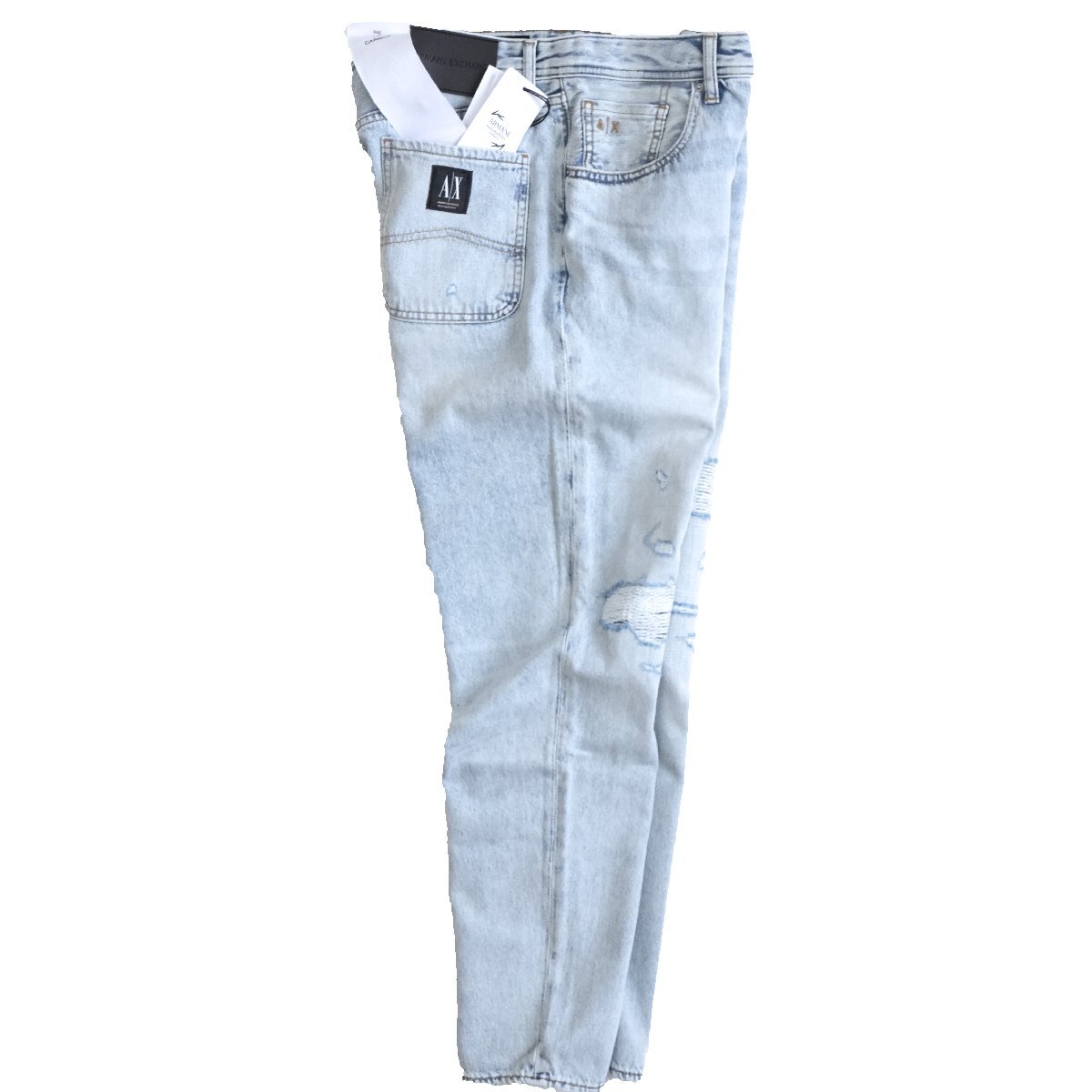 ◆新品◆アルマーニ◆お洒落度上がる 抜け感と脚長効果もたらす クラッシュ 味出し 淡青 テーパード キャロット デニム 31◆ARMANIEXCHANGE