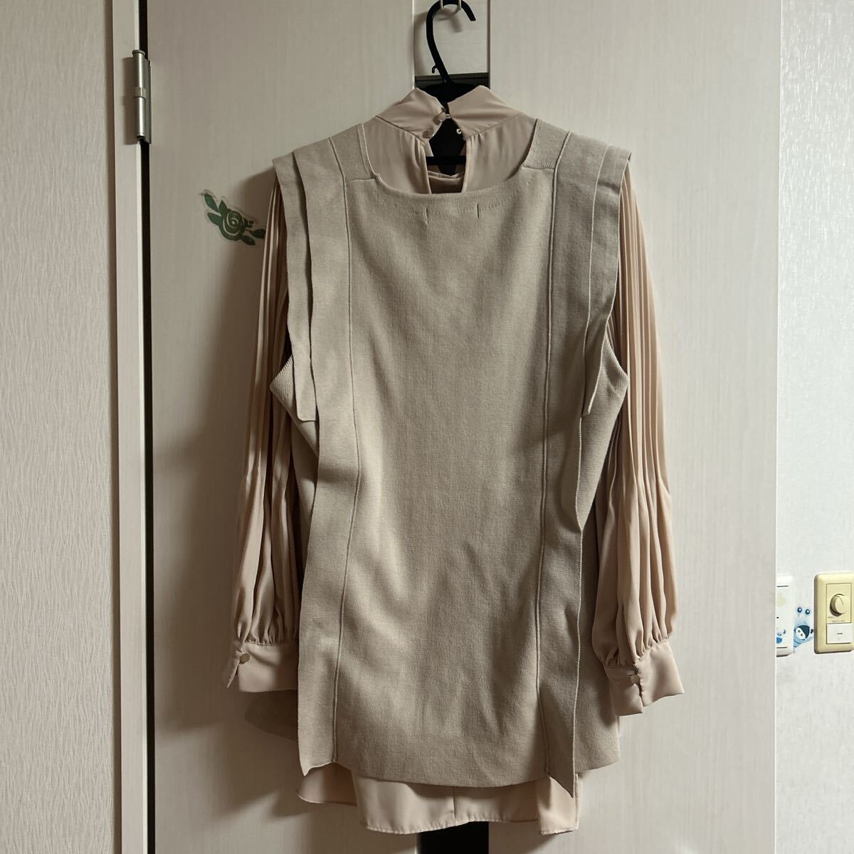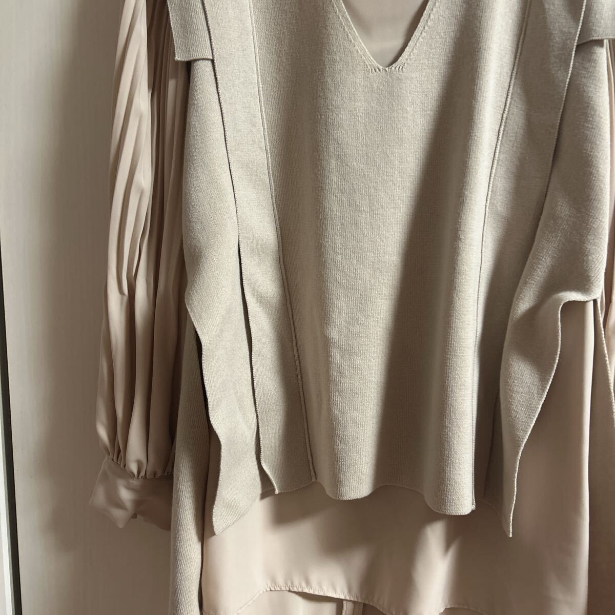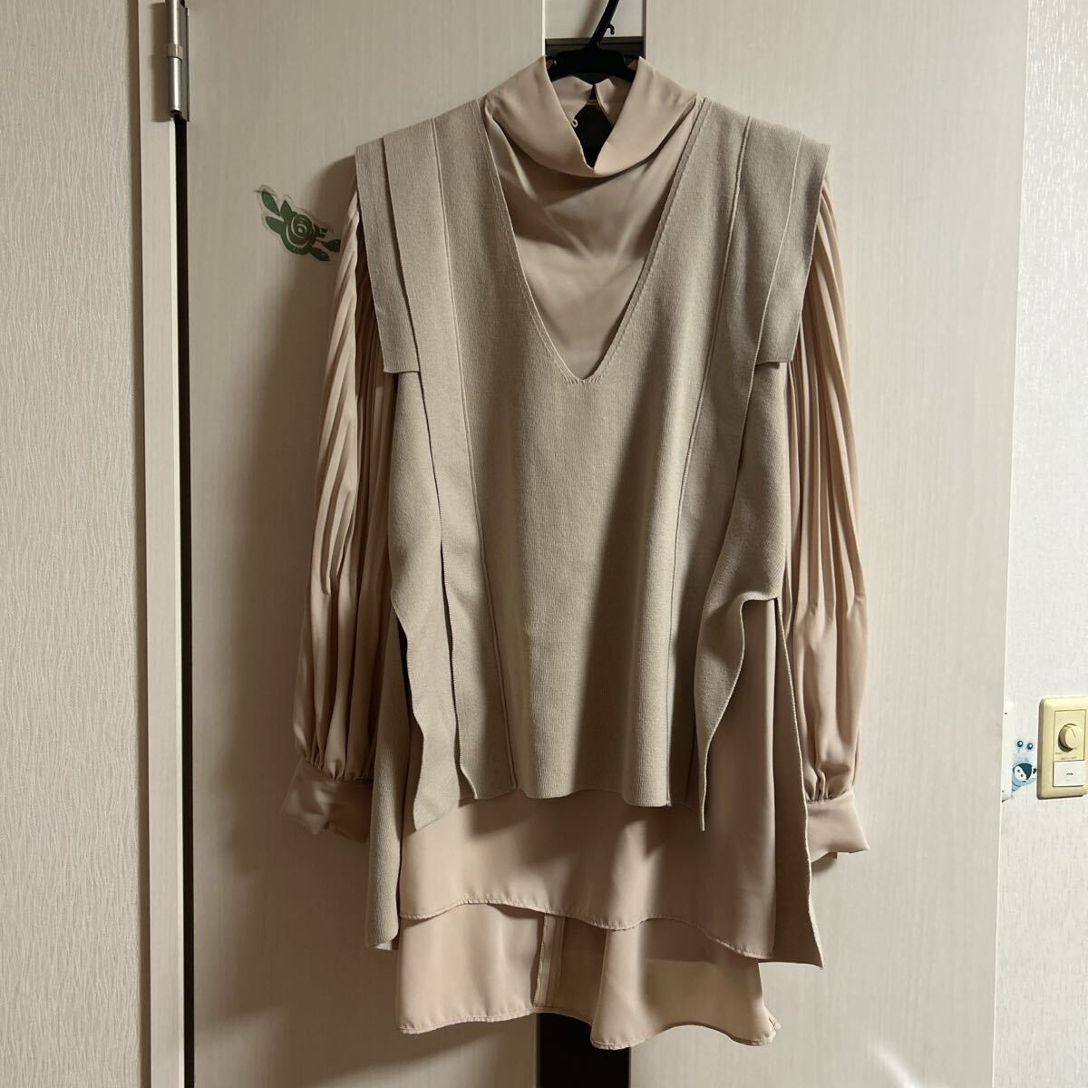 ココディールのプリーツスリーブブラウスとニットベストのセットです。それぞれでワンピースやシャツと重ね着もできて着回しもできる、素敵なアイテムです。お色味はピンクがかった肌が綺麗に見えるベージュで、シーズンレスでお使い頂けます。
