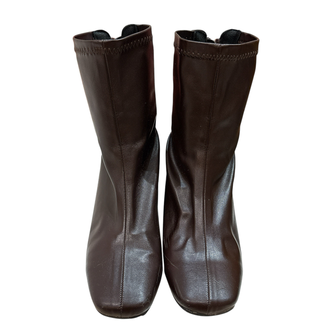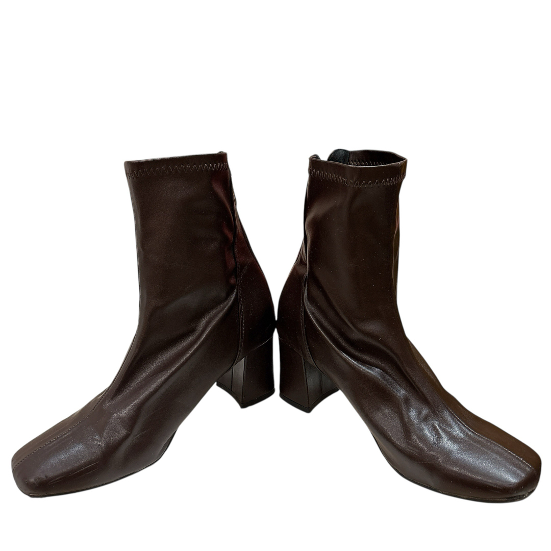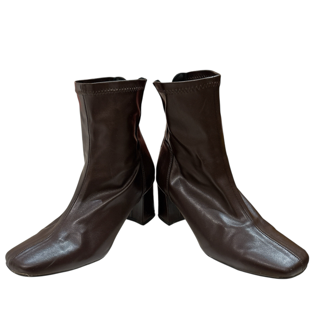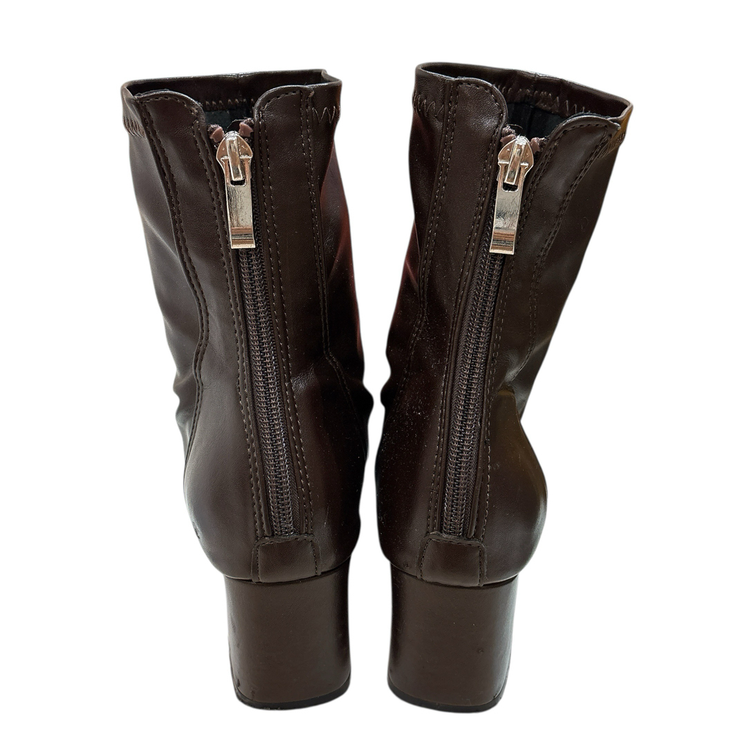 デザイン: スクエアトゥ、チャンキーヒール、バックジップ