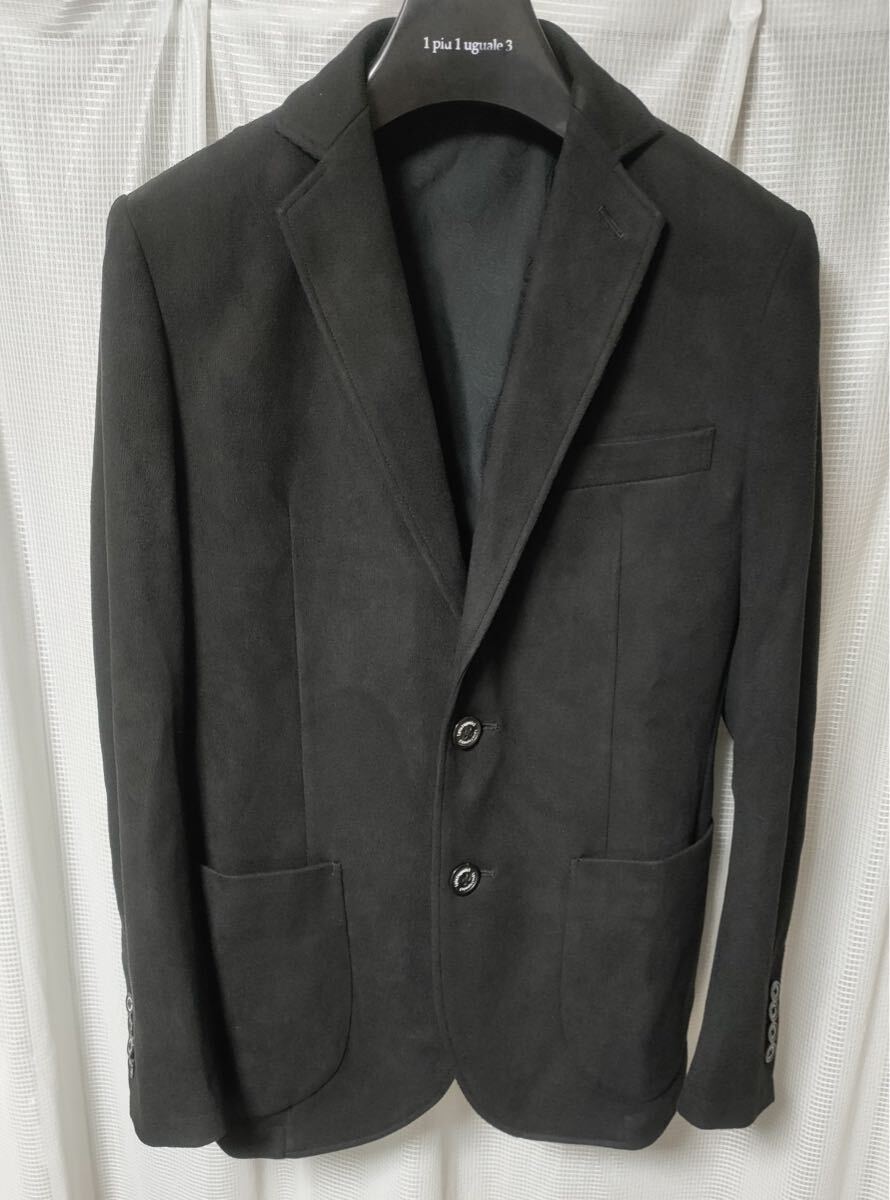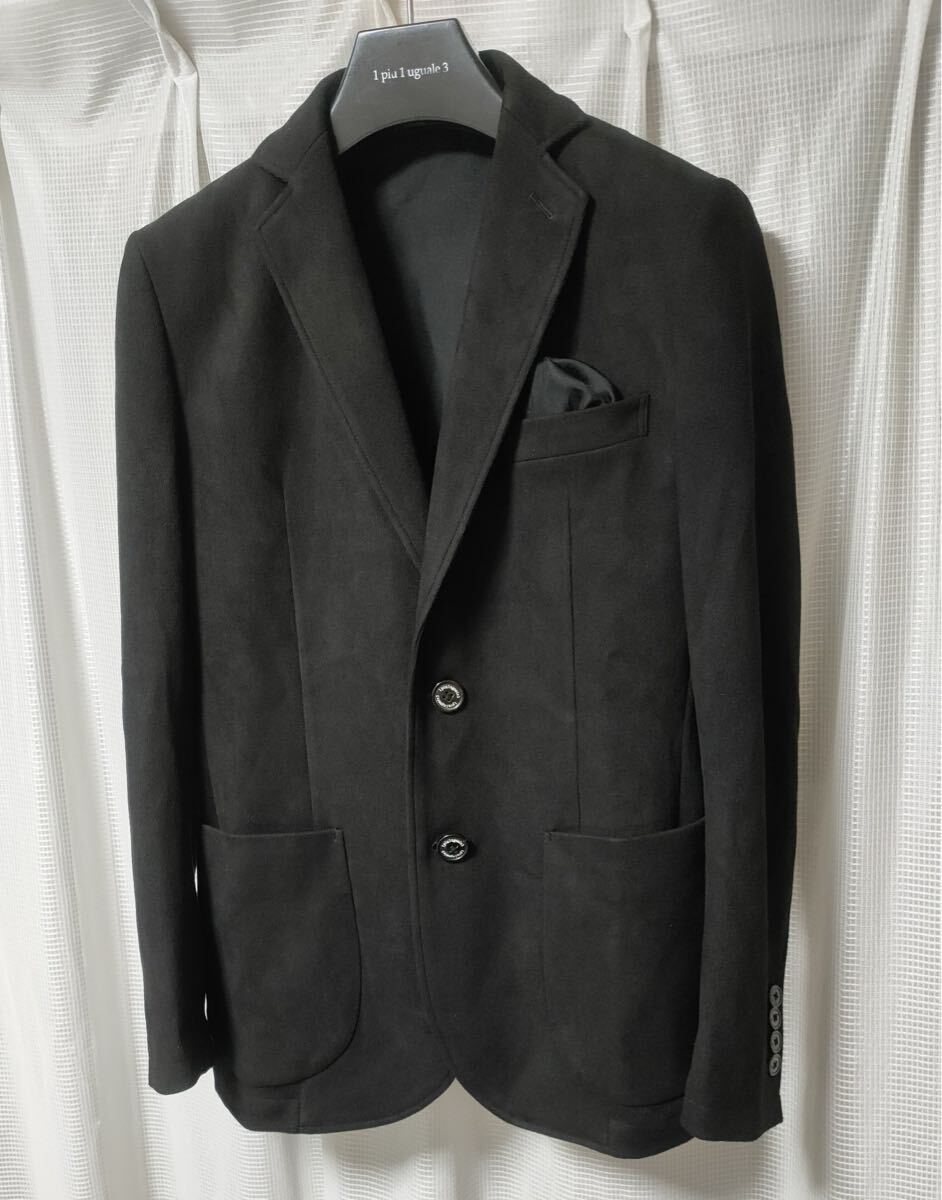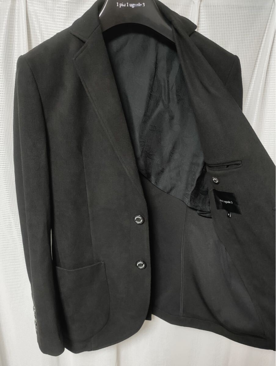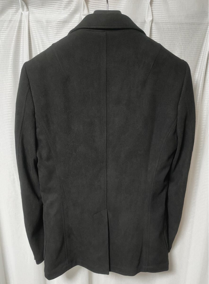 エコスエード(フェイクスエード)のジャケットです。高級感があり単体でかっこいいジャケットでブラックなのでどんなパンツにでも合わせやすいです。
