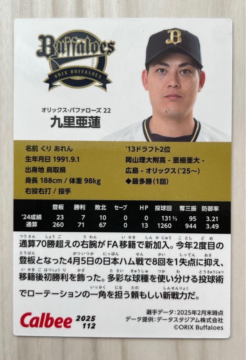 プロ野球チップス 2025 第2弾 112 九里亜蓮(オリックス) レギュラーカード カルビー オリックス・バファローズ