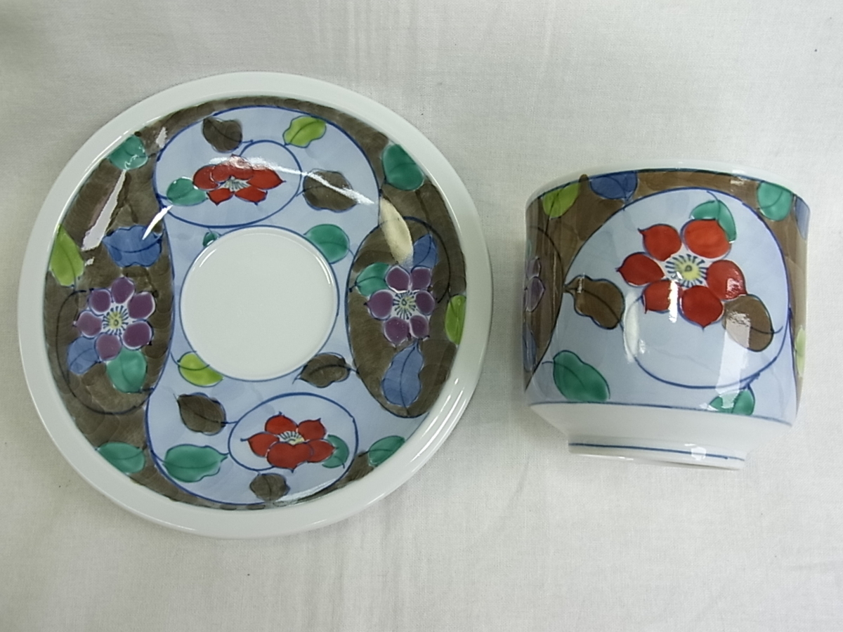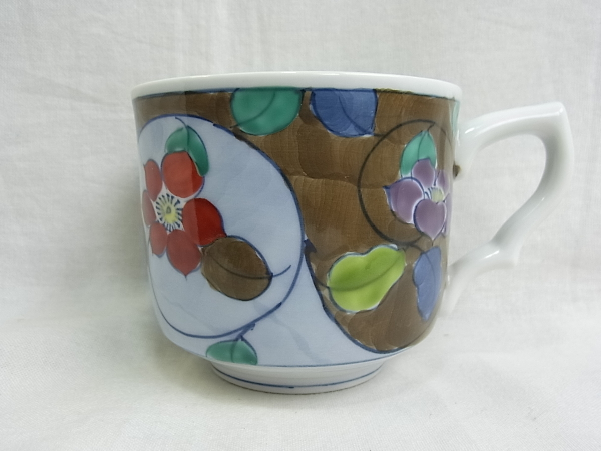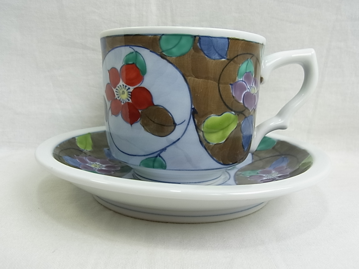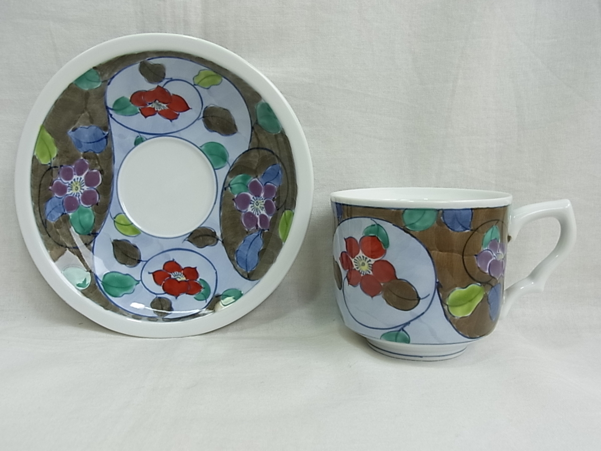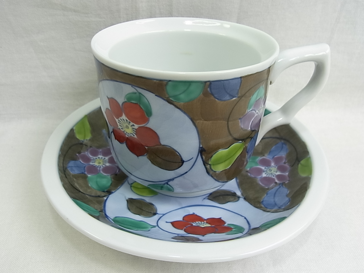 ●●●【日本製【花】 コ-ヒ-カップ&ソサ- 寸法約95×52mm 皿135mm少し厚めの作りです 新品ででは御座いませんが共箱無し 未使用品。