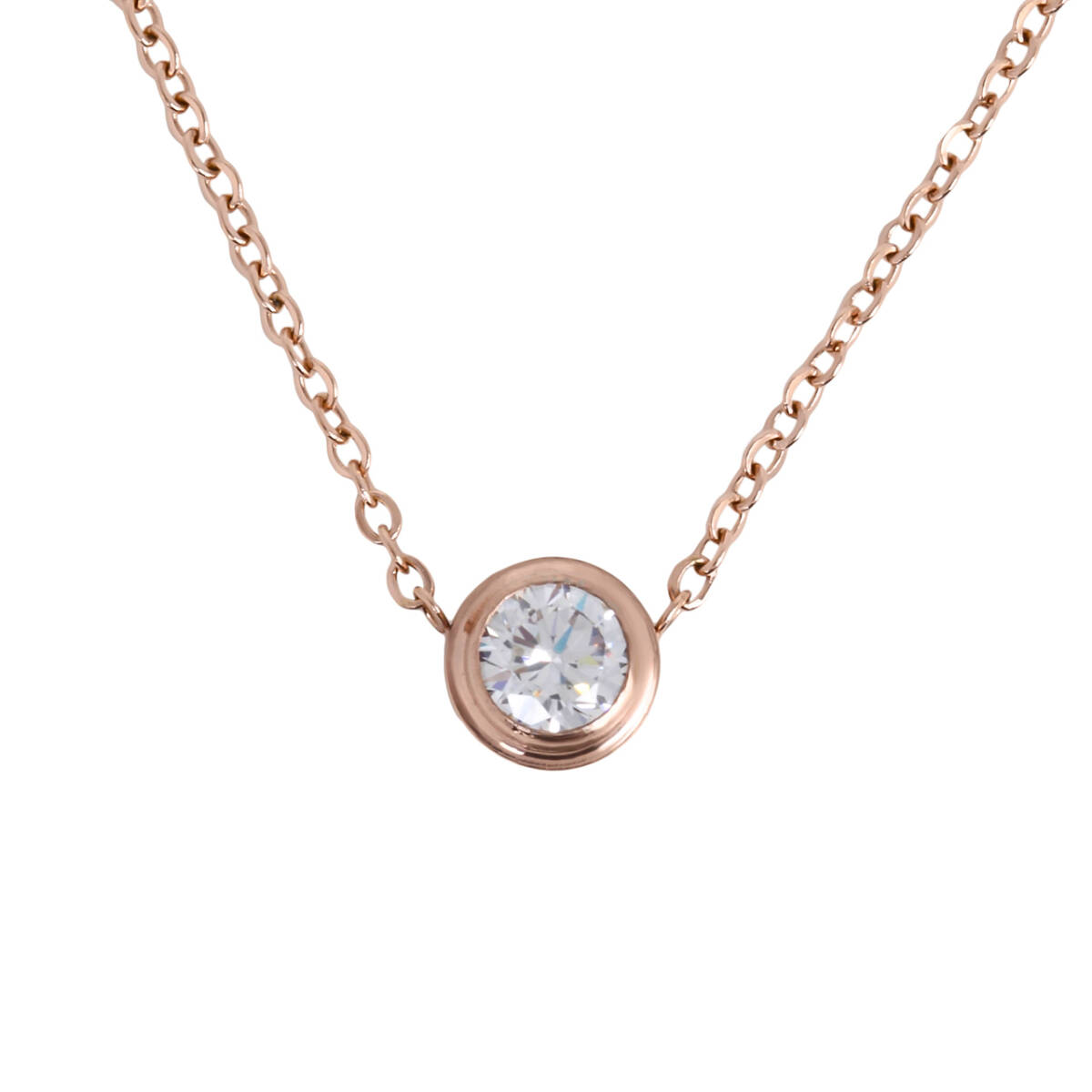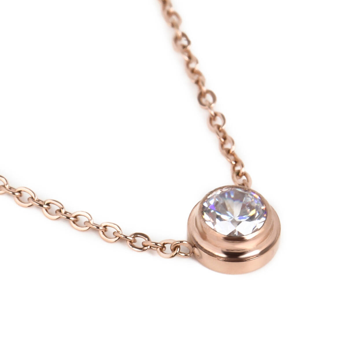 ネックレス 18金 ピンクゴールドフィルド 一粒 ダイヤモンド スワロフスキークリスタル 上品 フォーマル K18 刻印入り レディース