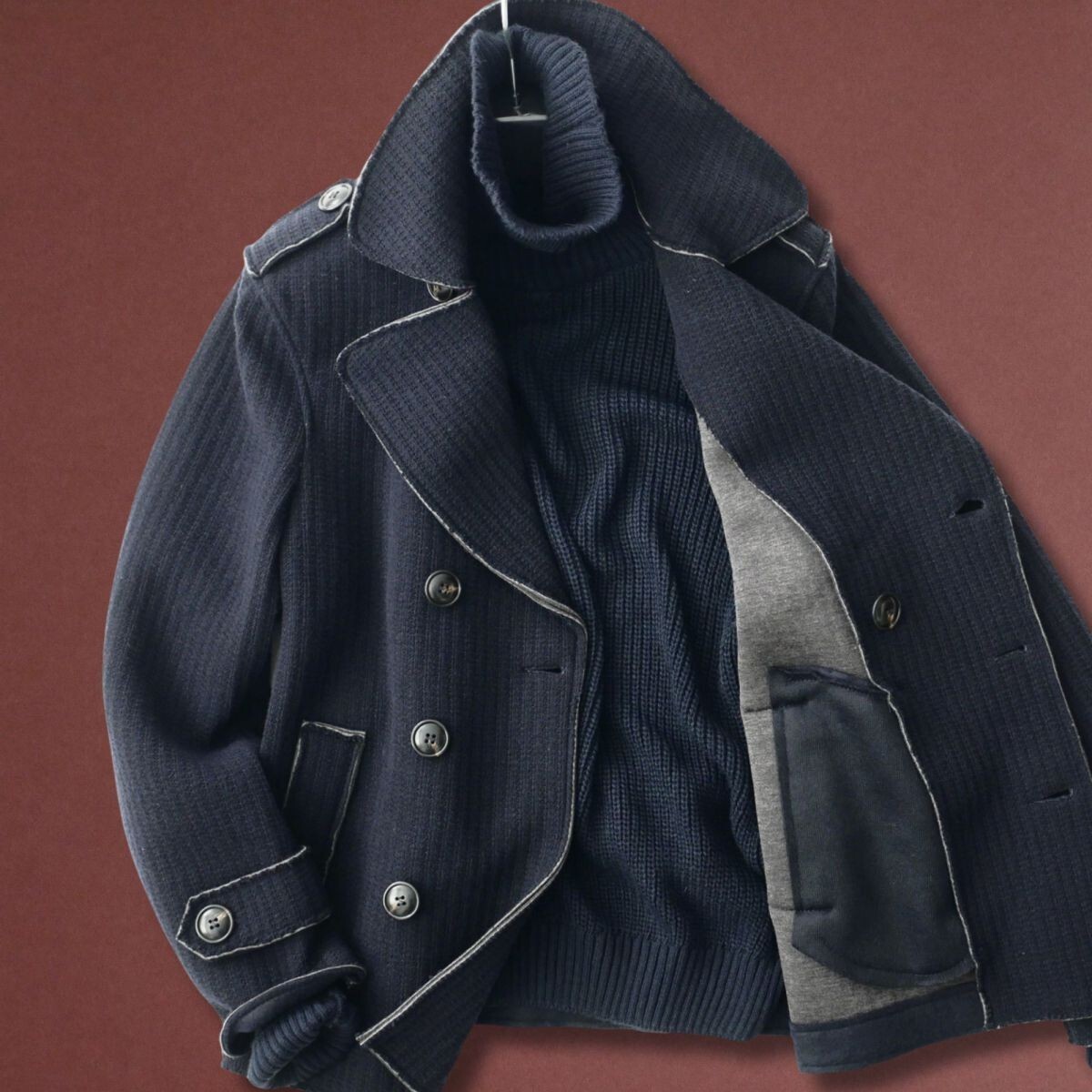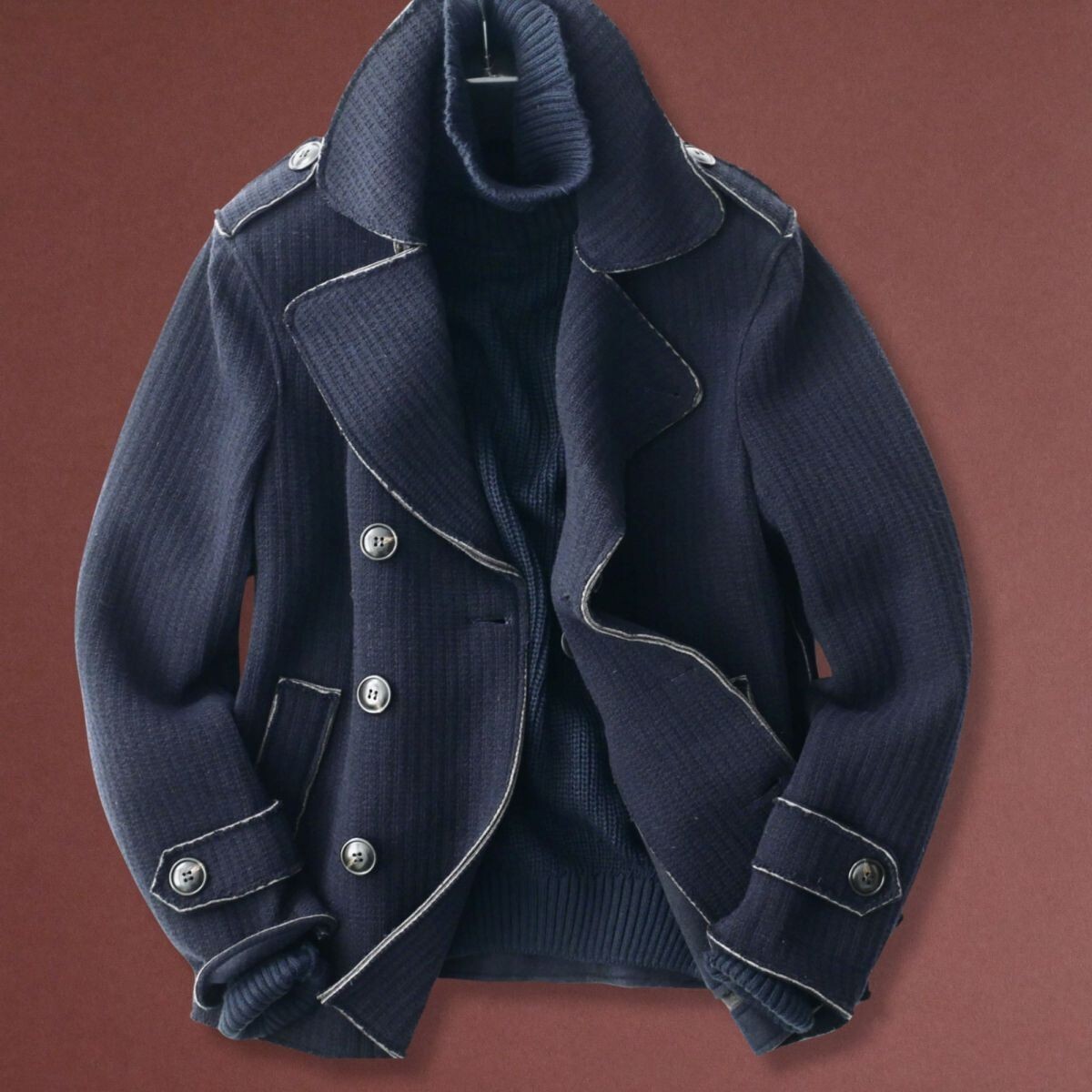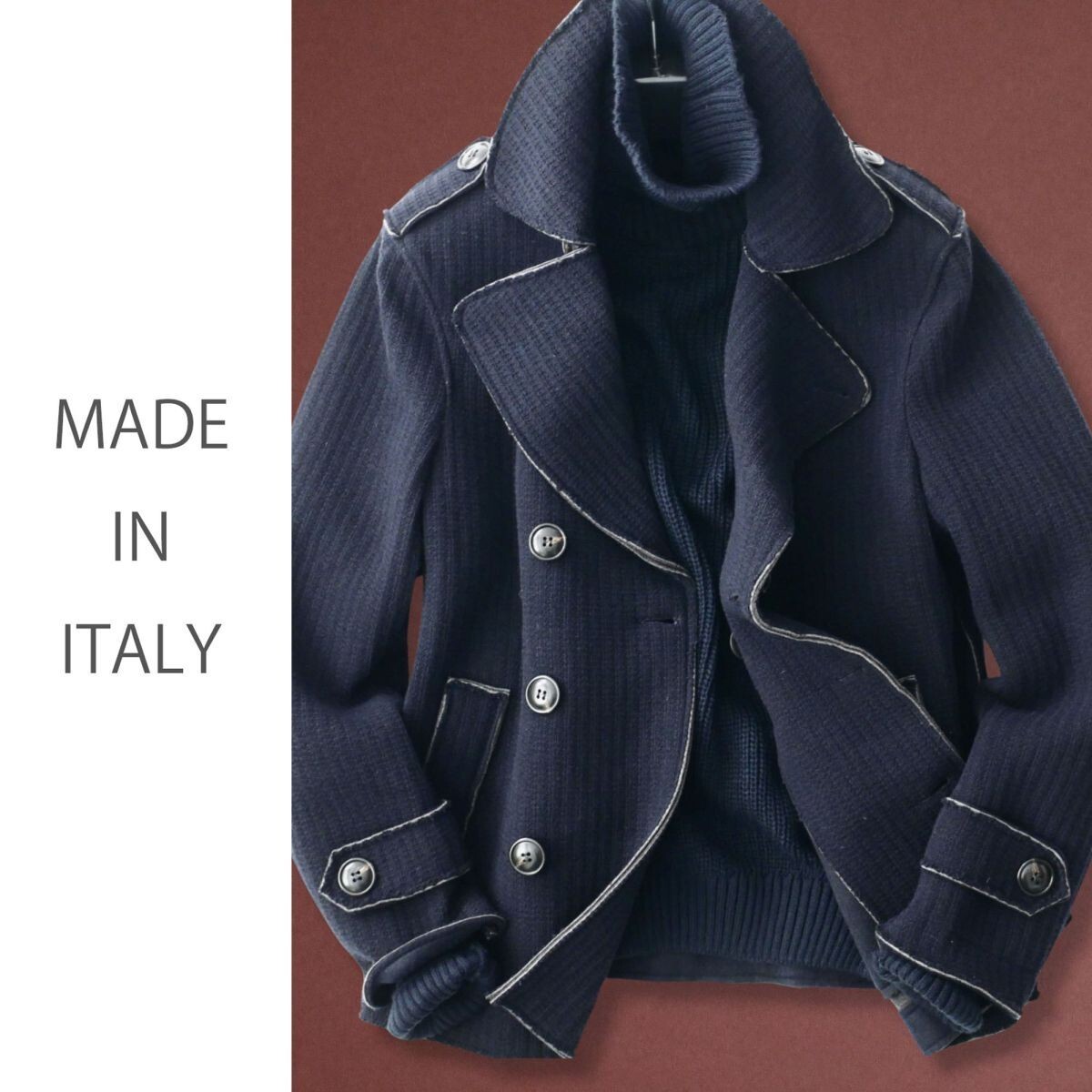 ●イタリア製デザイナーズメゾンスタジオから、エレガントかつ洗練されたニットコートとなります。 ●こちらは、イタリア製のデザイナーズメゾンスタジオで作られた、高品質なアイテムです。このファクトリーは、数多くのブランドへOEM供給を行っている、中部イタリアのデザイナーズメゾンスタジオにて制作されており、その実績と技術力が詰まった一枚です。 ●上質なイタリアンスタイルを体現する、エレガントかつ洗練されたニットコート。ウールを主体とした柔らかな素材感と伸縮性を兼ね備えたテキスタイルで、押さえたスタイリッシュな丈感がかっこいい、快適な着心地を実現する逸品です。 クラシックなダブルブレスト仕様:大きめのメタルボタンとエポレットが際立つデザインで、ミリタリーテイストを現代風にアレンジ。 コントラストステッチ:切りっぱなし風のディテールがアクセントとなり、程よいカジュアル感をプラス。 裏地のビスコース仕上げ:滑らかな肌触りで袖通しも快適、上質感が漂います。シルエットとフィット感 適度に体にフィットするカッティングで、すっきりとしたラインを強調します。動きやすさとスタイルアップを両立するデザインです。 デニムやチノパンと合わせてカジュアルにも、スラックスと合わせてエレガントにも対応する万能なアウターです。秋冬の主役として、シンプルなコーディネートにアクセントを加えてくれます。このニットコートは、イタリア製ならではの卓越したデザインセンスを求める方にぴったりの一着です。普段手軽に合わせやすく、長くご愛用いただけること間違いありません。 ●襟元まで閉じていただけます。ポケットあり。伸縮性あり。切り離しデザイン。 ●色:ダークネイビー系 ●素材:ウール60% ポリエステル30% アクリル5% その他繊維5% 別布:ビスコース100% ●サイズ:M L XL XXLの中から、お選びいただけます。*ご落札後、取引連絡よりご希望のサイズをお申し付け下さい(後の変更・交換・キャンセルは一切して頂けません)。ご落札後、24時間以内のご連絡の程お願い申し上げます。*下記詳細サイズもご確認の上、よろしくお願いいたします。 ●詳細サイズ(cm)置いた状態で: M *イタリアサイズ46相当。日本サイズ概ねMサイズ辺りとなりますが、着用時の伸縮により比較的多くの方に適応頂けそうです。下記詳細サイズもご確認の上、よろしくお願いいたします。 肩幅:43.5(右肩端~左肩端の直線距離) 身幅:52(右脇下~左脇下の直線距離) 袖丈:61(肩の縫い目~袖先) 着丈:64(襟の付け根~裾まで。襟の幅を含んでいません) L *イタリアサイズ48相当。日本サイズ概ねM-Lサイズ辺りとなりますが、着用時の伸縮により比較的多くの方に適応頂けそうです。下記詳細サイズもご確認の上、よろしくお願いいたします。 肩幅:45.5(右肩端~左肩端の直線距離) 身幅:54(右脇下~左脇下の直線距離) 袖丈:63(肩の縫い目~袖先) 着丈:66(襟の付け根~裾まで。襟の幅を含んでいません) XL *イタリアサイズ50相当。日本サイズ概ねLサイズ辺りとなりますが、着用時の伸縮により比較的多くの方に適応頂けそうです。下記詳細サイズもご確認の上、よろしくお願いいたします。 肩幅:47.5(右肩端~左肩端の直線距離) 身幅:56(右脇下~左脇下の直線距離) 袖丈:65(肩の縫い目~袖先) 着丈:68(襟の付け根~裾まで。襟の幅を含んでいません) XXL *イタリアサイズ52相当。日本サイズ概ねXLサイズ辺りとなりますが、着用時の伸縮により比較的多くの方に適応頂けそうです。下記詳細サイズもご確認の上、よろしくお願いいたします。 肩幅:49.5(右肩端~左肩端の直線距離) 身幅:58(右脇下~左脇下の直線距離) 袖丈:67(肩の縫い目~袖先) 着丈:70(襟の付け根~裾まで。襟の幅を含んでいません) 詳細サイズご参考 ※大よその採寸となります。 ※ご落札後取引ナビよりサイズご相談頂くことが無いよう、サイズは事前のお決め頂いた上よろしくお願い致します。 ※ご落札後、ご希望サイズを取引ナビより、必ずお知らせ下さいませ。ご落札後24時間以内を経過後、ご希望サイズをいただけない場合は、取引のキャンセルもしくは、こちらにて任意のサイズにて選択させていただくことがございます(その場合も後のサイズ変更・交換・キャンセルは一切して頂けません)。 ※お品物はタイトルにございますもののみとなり、着合わせのお洋服や小物などがございましても、それらは含まれません。 ※素材の特性上、多少のことはご容赦くださいませ。 ※ご質問は、必ずご入札前にお願いいたします。(ご入札後、ご落札後の取引ナビからのご質問はお避け下さい) ☆☆☆ご連絡・お支払い(Yahooかんたん決済)☆☆☆ ご落札後24時間以内に、取引ナビからご連絡(お名前・ご住所全て。*サイズ選択いただけるオークションはサイズのご連絡も含め)・Yahooかんたん決済可能な方。 *銀行振込の場合は翌営業日、コンビニ決済はご落札後2日目の午前中まで、お支払いをお済ませ下さいませ。 電話応対は、一切致しておりません。取引ナ