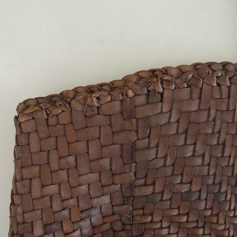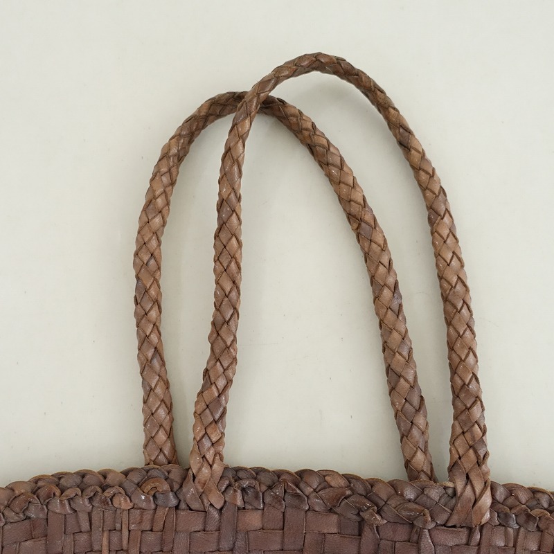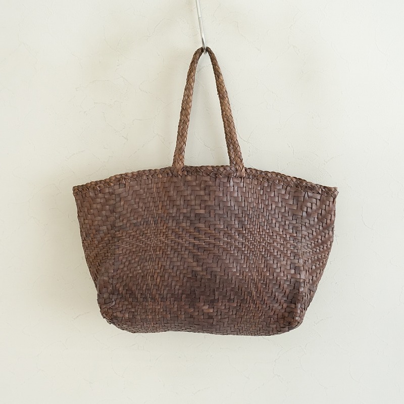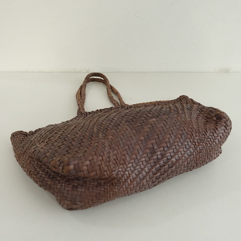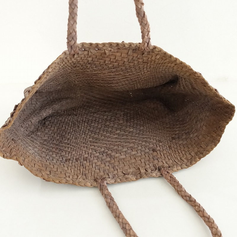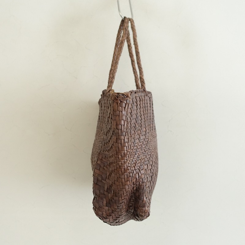 dragonのレザーメッシュトートバッグです。カラーはブラウン系で、レザー素材で編まれています。開口はオープンです。 |