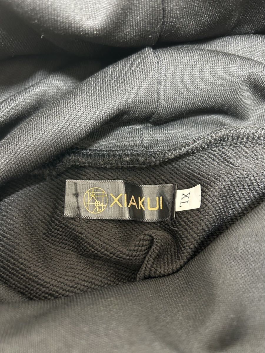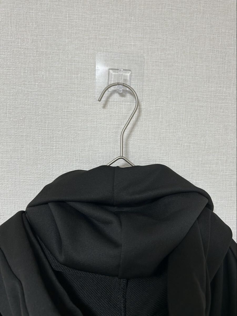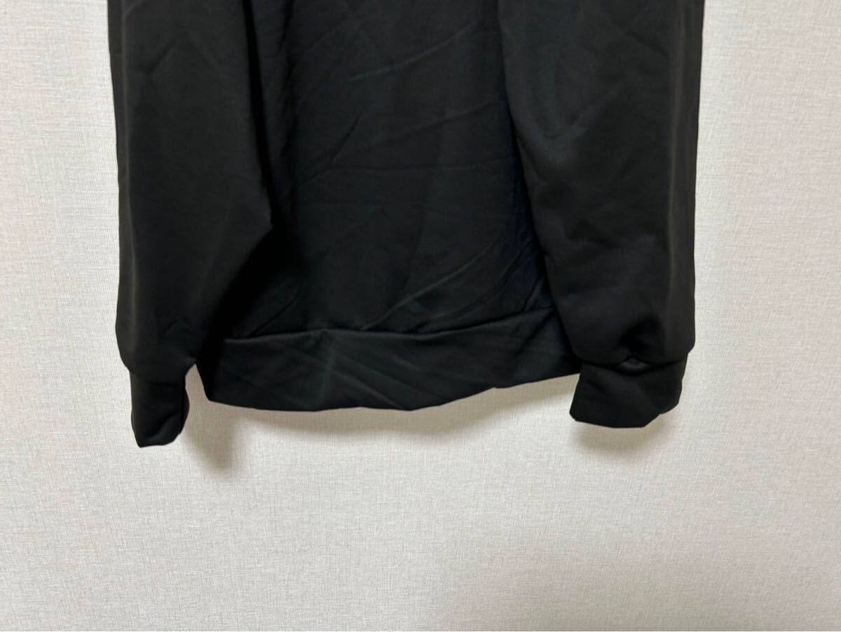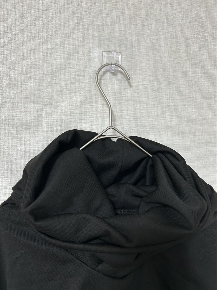 シンプルなデザインのブラックXLパーカー、フロントポケット付き。