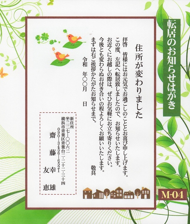 ★「転居はがき」官製はがきサービス印刷のご案内です。