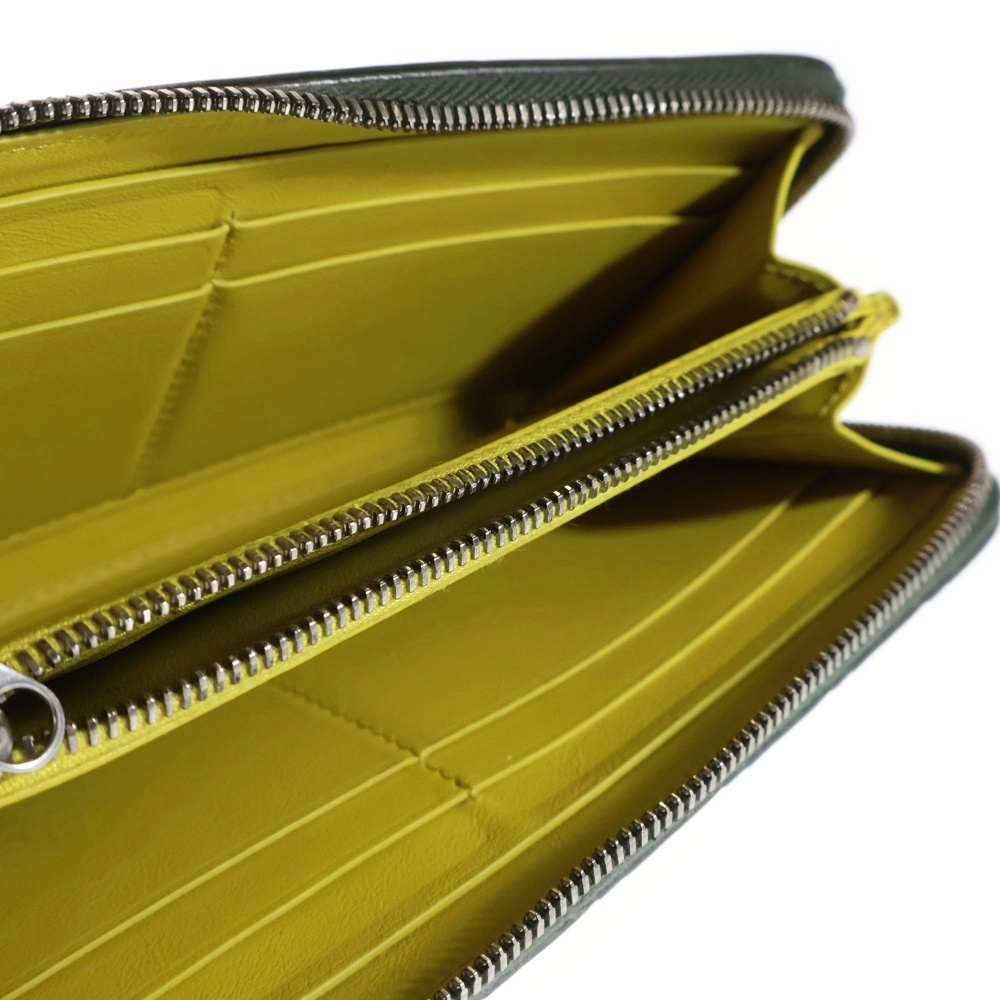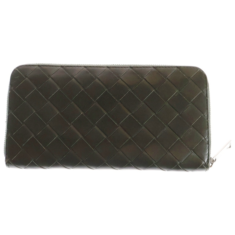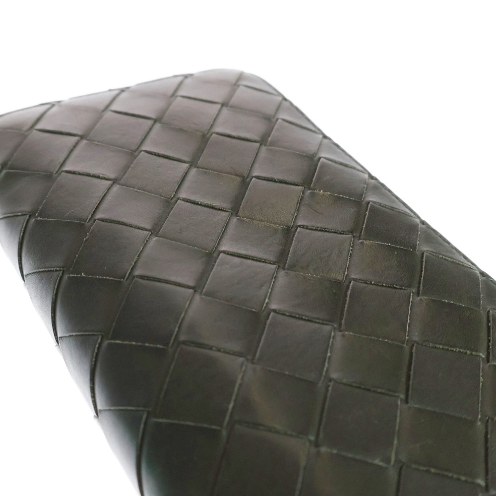 ボッテガヴェネタ ラウンドジップ イントレチャート ロングウォレット 長財布 カードケース ダークグリーン レザー シルバー金具
