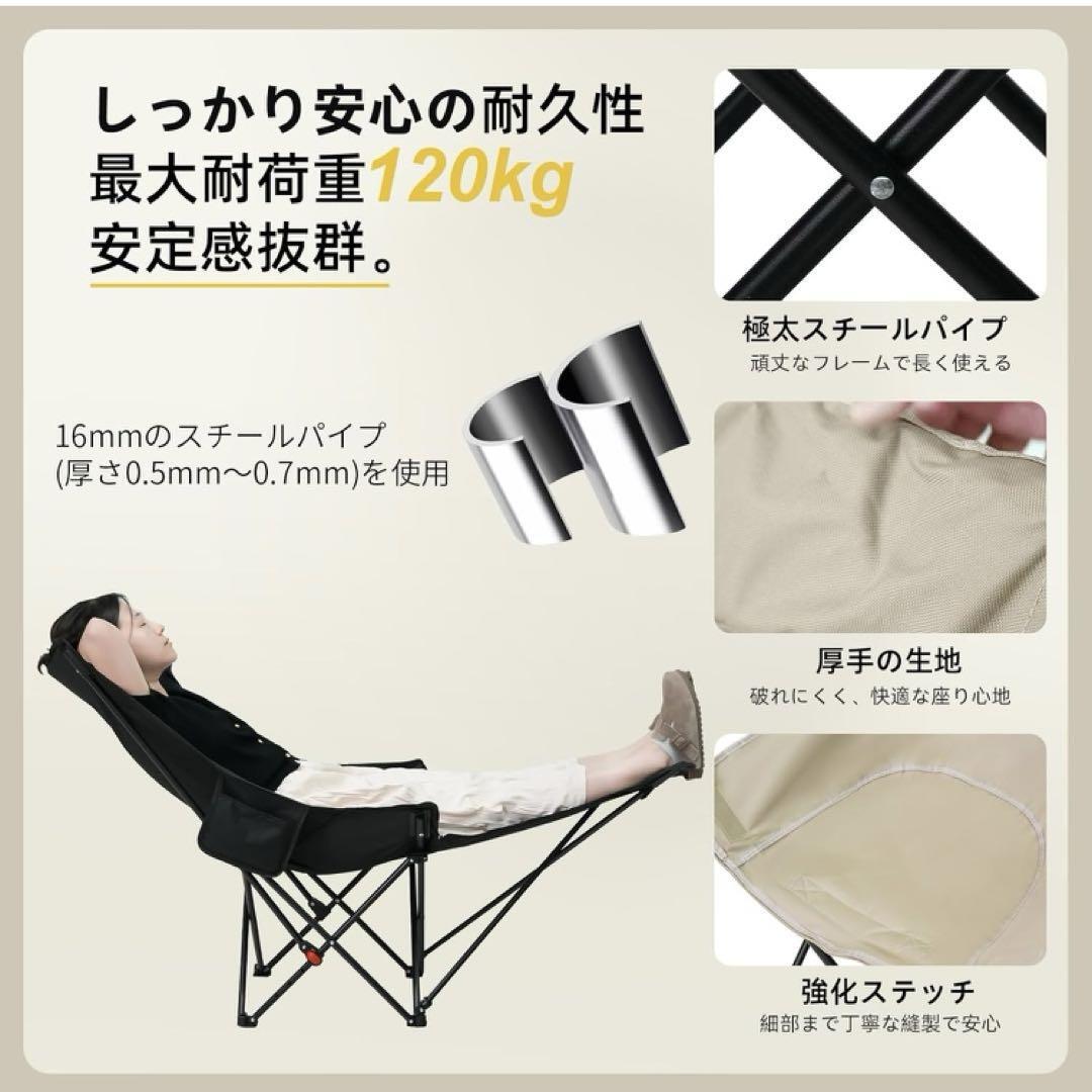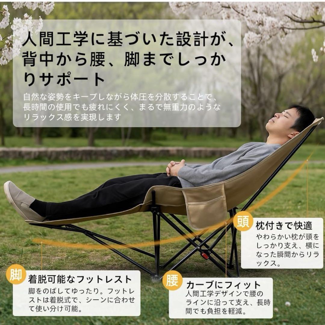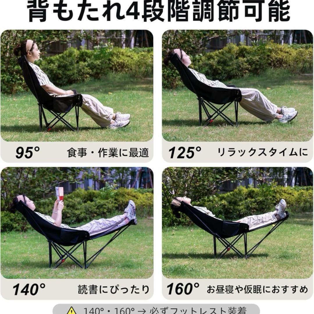 【4段階調節リクライニングチェア&キャンプ椅子】このキャンプ椅子の背もたれは、通常の折りたたみ椅子のように座るだけでなく、ベッドのように横になることで、100度から145度まで調整できます、とても快適に使用できます背もたれの角度は100°-115°-130°-145°の4段階で1秒調節でき、日差しを避けたい時、読書やビデオを見るなど場合にも適応している角度、そして完全に倒してのんびり休憩できます!キャンプ、焚き火、リビングルーム、バルコニー、オフィスなど、様々なシーンでのニーズに対応しています。;屋内でもアウトドアでも昼休みの使用されて、平らにまたはあなたの側に横たわることができます。