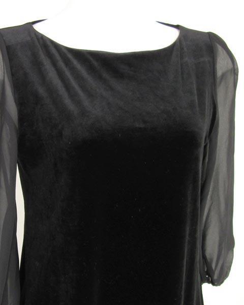 | 艶やかなベロアがとっても上品なお洒落ワンピース♪お袖のシアーな透け感で重くなりすぎない逸品です。パーティーシーンやお呼ばれにも大活躍。プルオーバータイプのゆったりシルエットで、清楚な印象を与えながらもリラックスしてお召し頂けます。 |