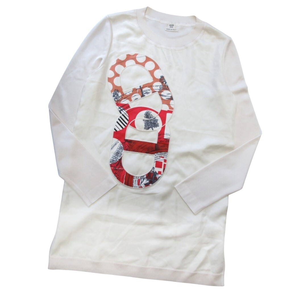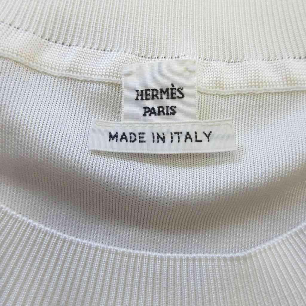 エルメス HERMES 美品 2022SS TWILL LANE ツイルレーヌ シェーヌダンクル カットソー ニット シルク 長袖 国内正規 ホワイト 34 ■MNK1