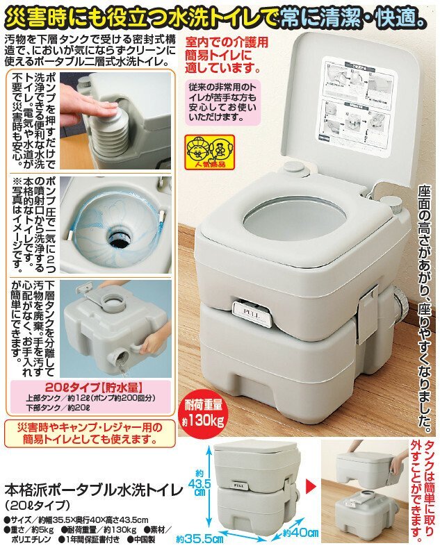 即決可@新品本格派ポータブル水洗トイレ 20Lタイプ | ||||||||||||