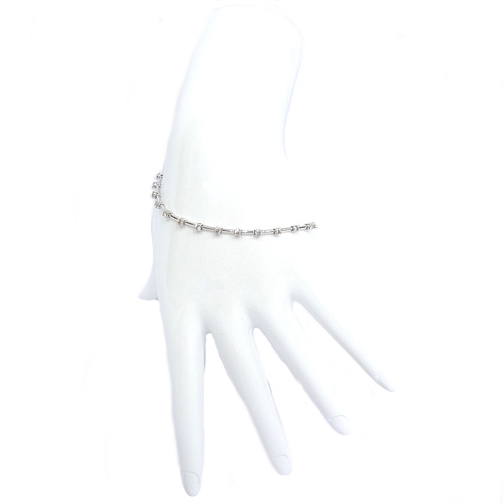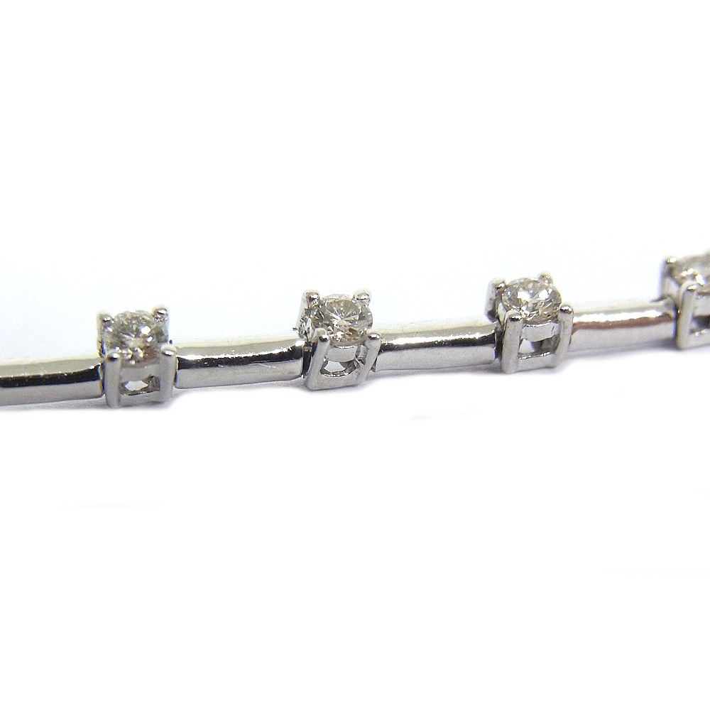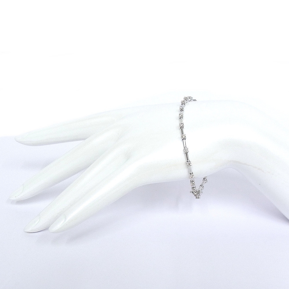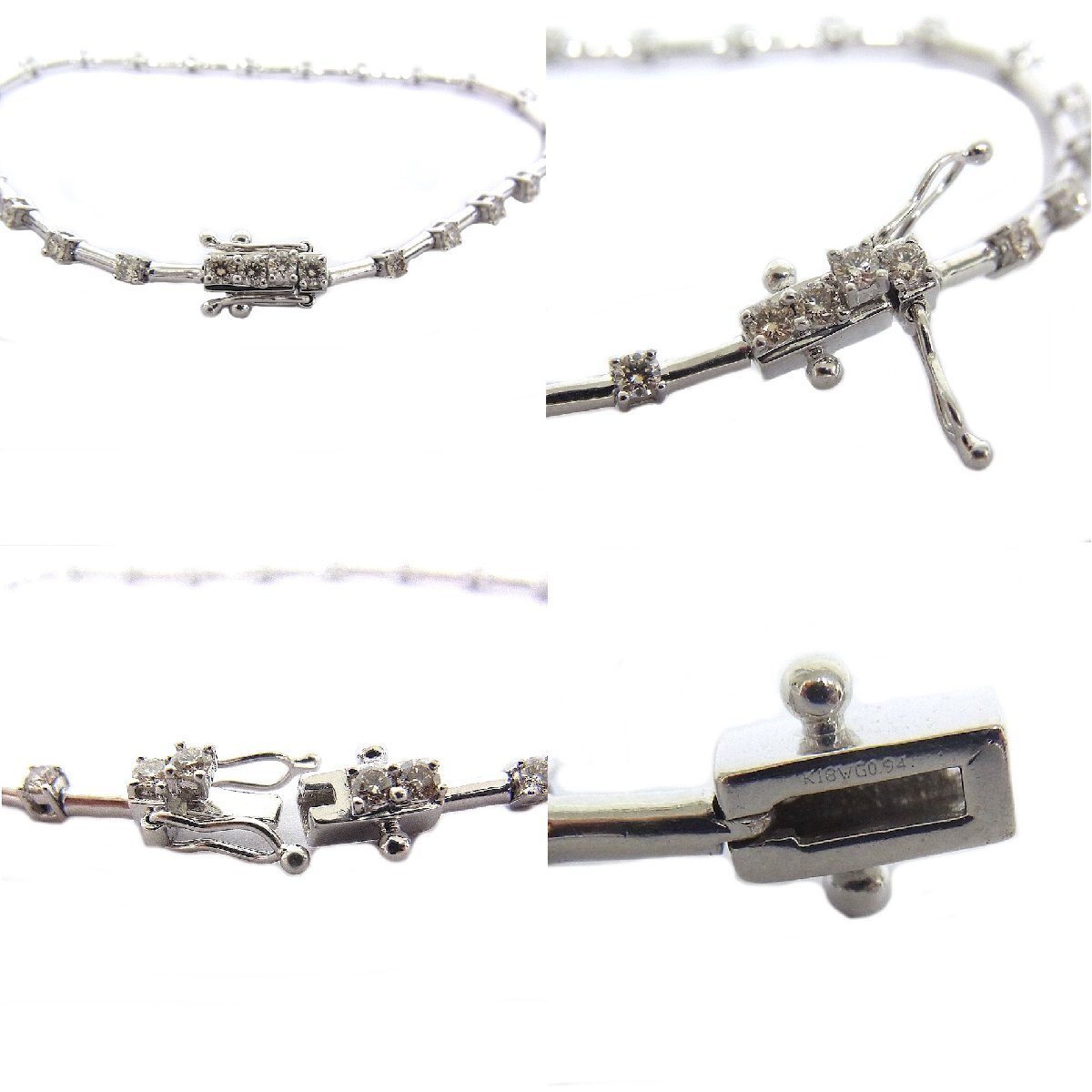 詳細・備考 | K18ホワイトゴールドを使用したダイヤ入りのデザインブレスレットです。 様々なシーンに活躍してくれると思います。 ■状態は、通常使用の際に付いてしまうような薄いスレ傷が若干見られますが、目立った傷や石取れ等はございません。 ☆お使いのモニターによっては、写真と実物の色味が若干違う場合がございます。ご了承ください。 |