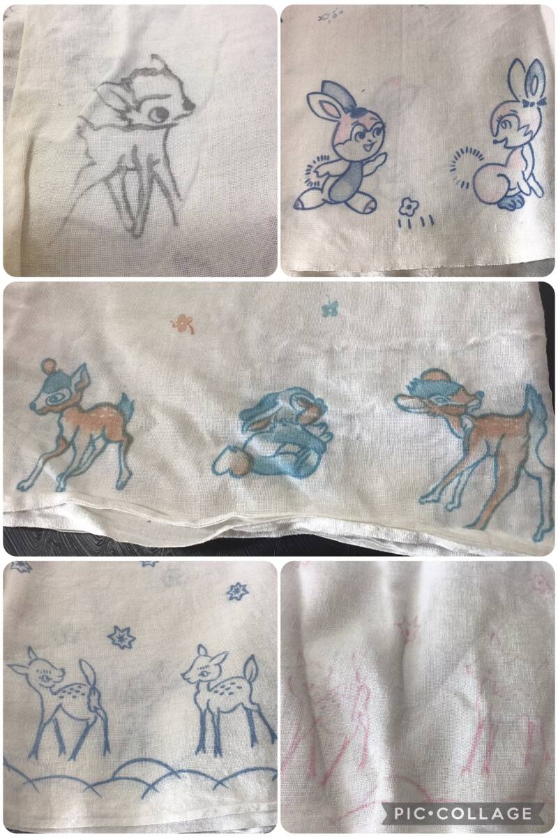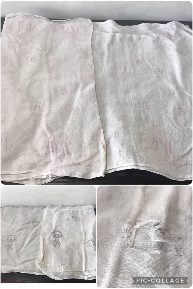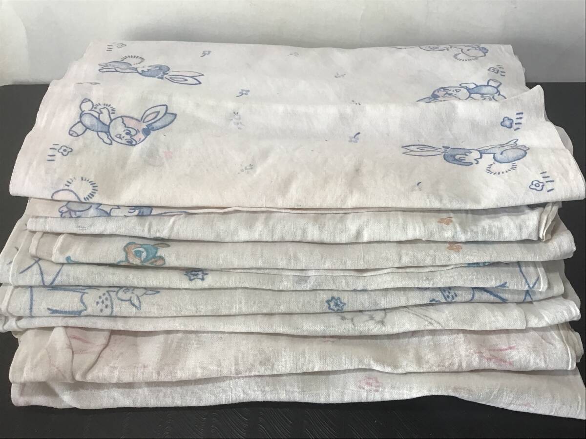 昭和レトロ 布おむつ 輪っかおむつ 8枚 バンビ うさぎ模様 古布 ハギレ リメイク材 中古 現状品