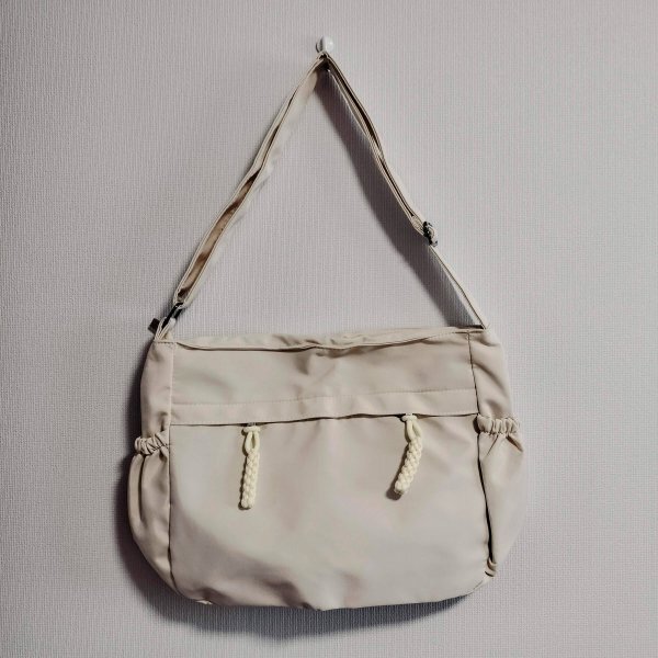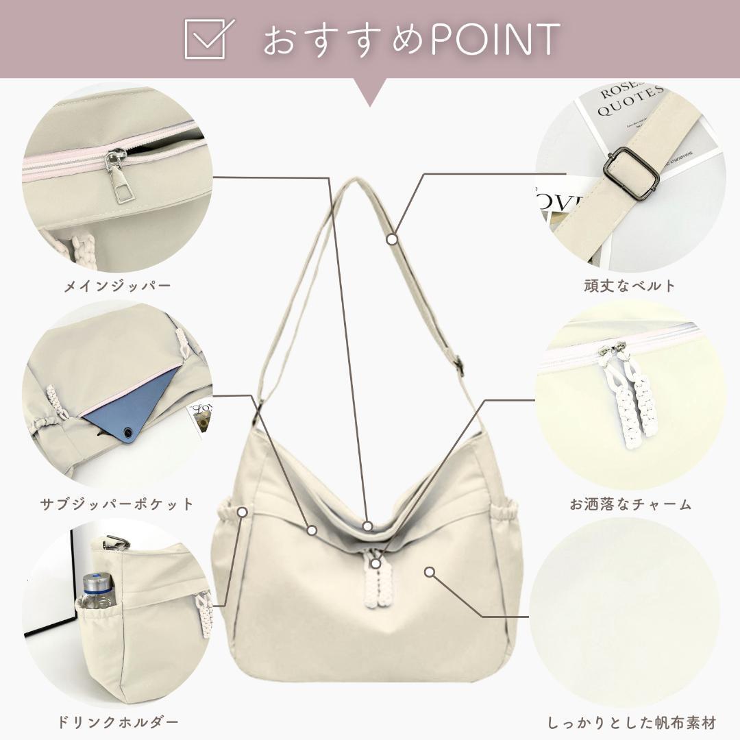 大人女性の毎日にちょうどいい、7ポケット仕様のキャンバスショルダーバッグです。