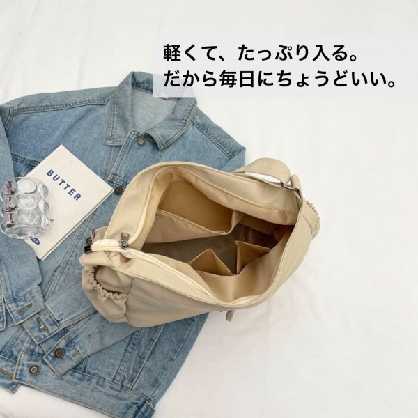 7つのポケットで「探さないバッグ」を実現。素材には軽くて丈夫なキャンバス地を使用し、肩掛けでも斜め掛けでもOKなストラップ付き。