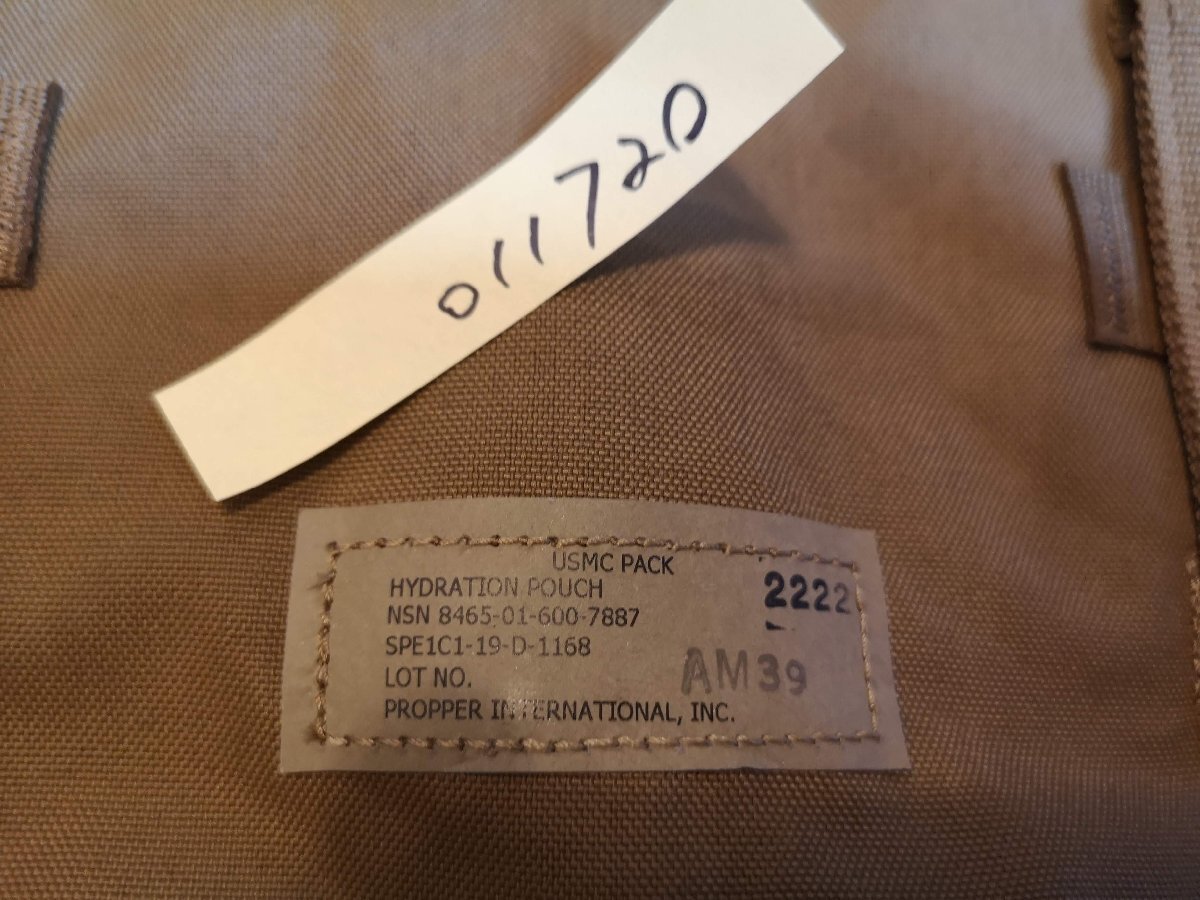 アメリカ海兵隊実物のハイドレーションポーチ(給水パックを収納するポーチ)です。 アメリカ海兵隊の個人装備システムFILBEのパックシステムに含まれるポーチで、リュックやボディアーマーに配備されたウェビングに取り付けられるようになっています。 マチはありませんが、十分な大きさがある為、サブバックとして、ストラップを付けてメインバックどちらでも使用して頂けます。 ●サイズ:約35 × 約24cm ●素材:ナイロン。●状態:デッドストック 。 全国ネコポス便200円にてお送りいたします、落札価格にプラスでお願いいたします。
