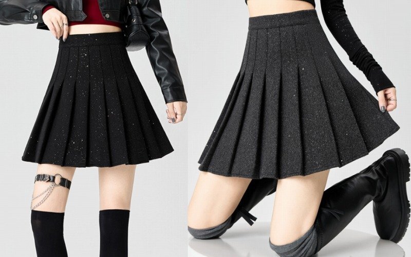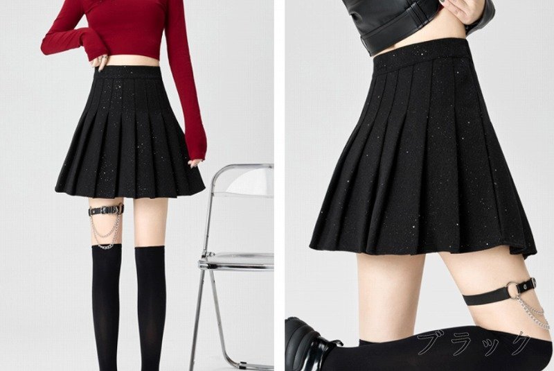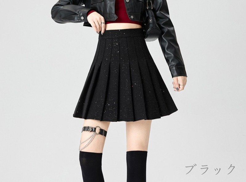 ミニスカート プリーツ フリル ボトムス 学生服風 シンプル カジュアル レディース XL ブラック