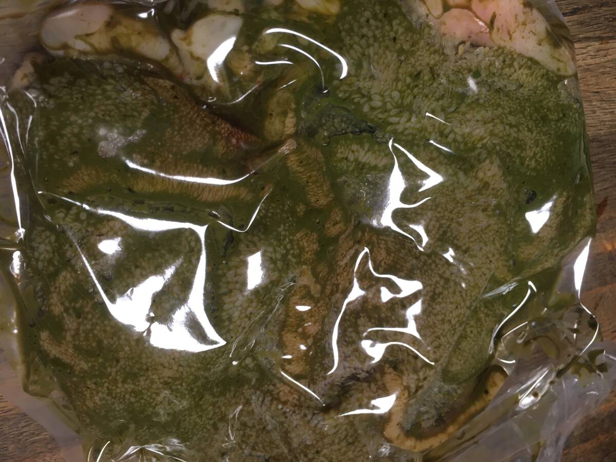 内容物を取り除いた本州鹿の第1胃袋です。内側にグリーントライプが付いています。