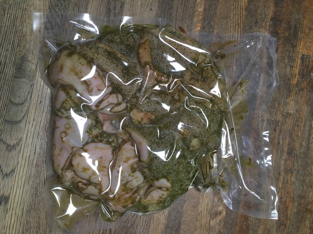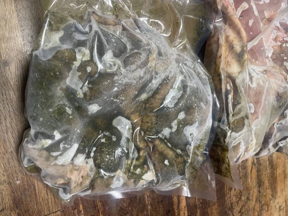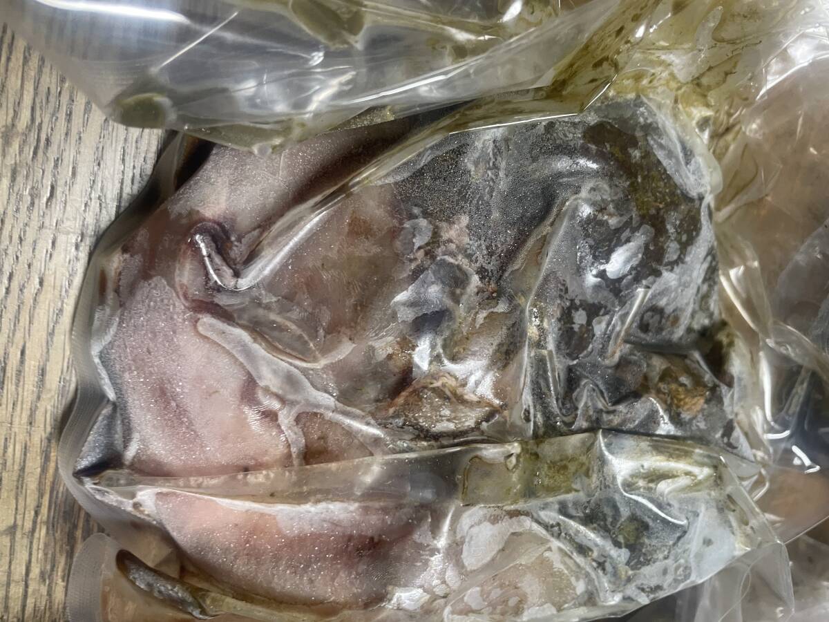新鮮なうちに匂いが漏れないようガスバリア真空パックで冷凍しています。