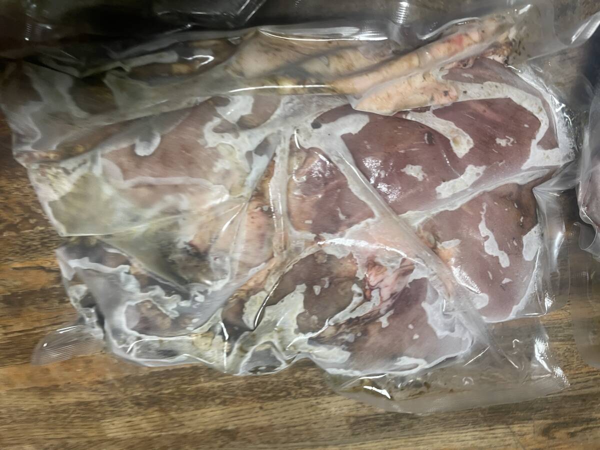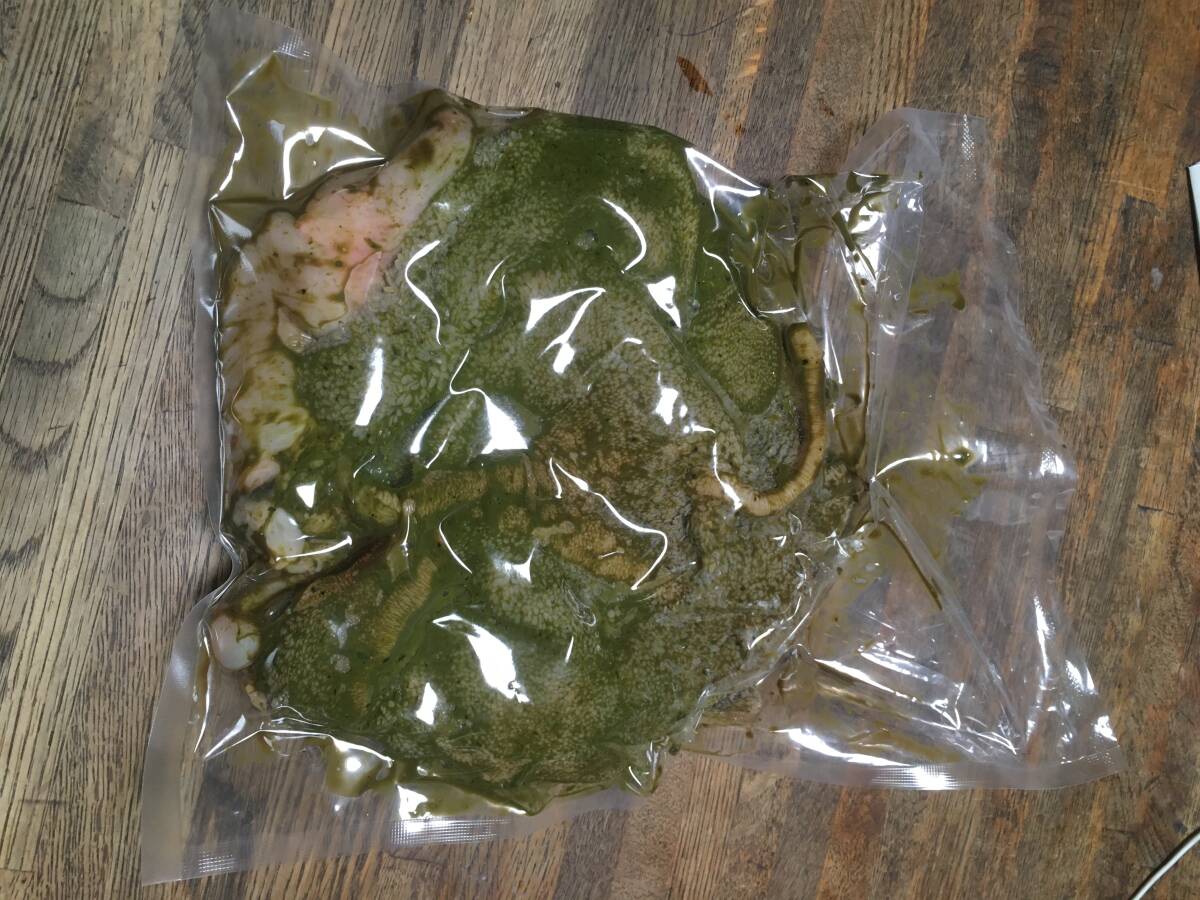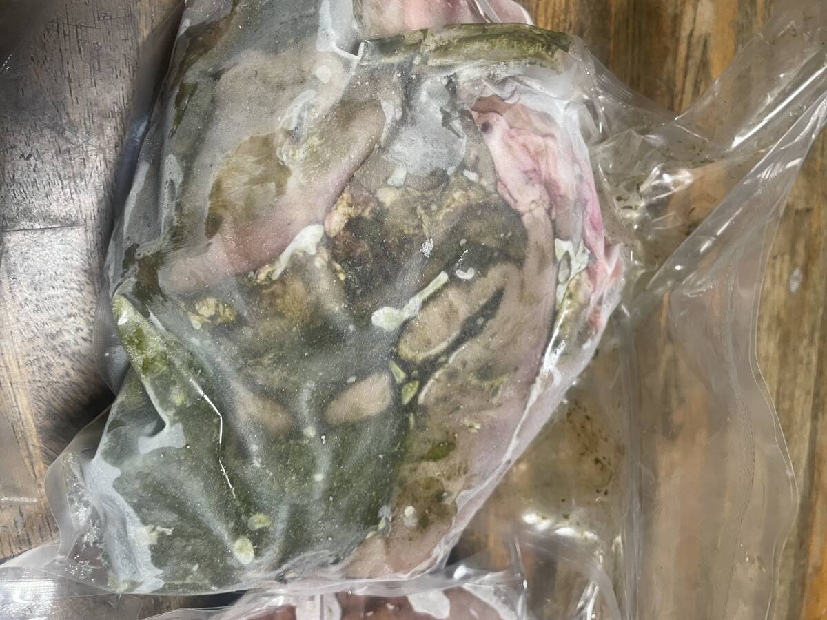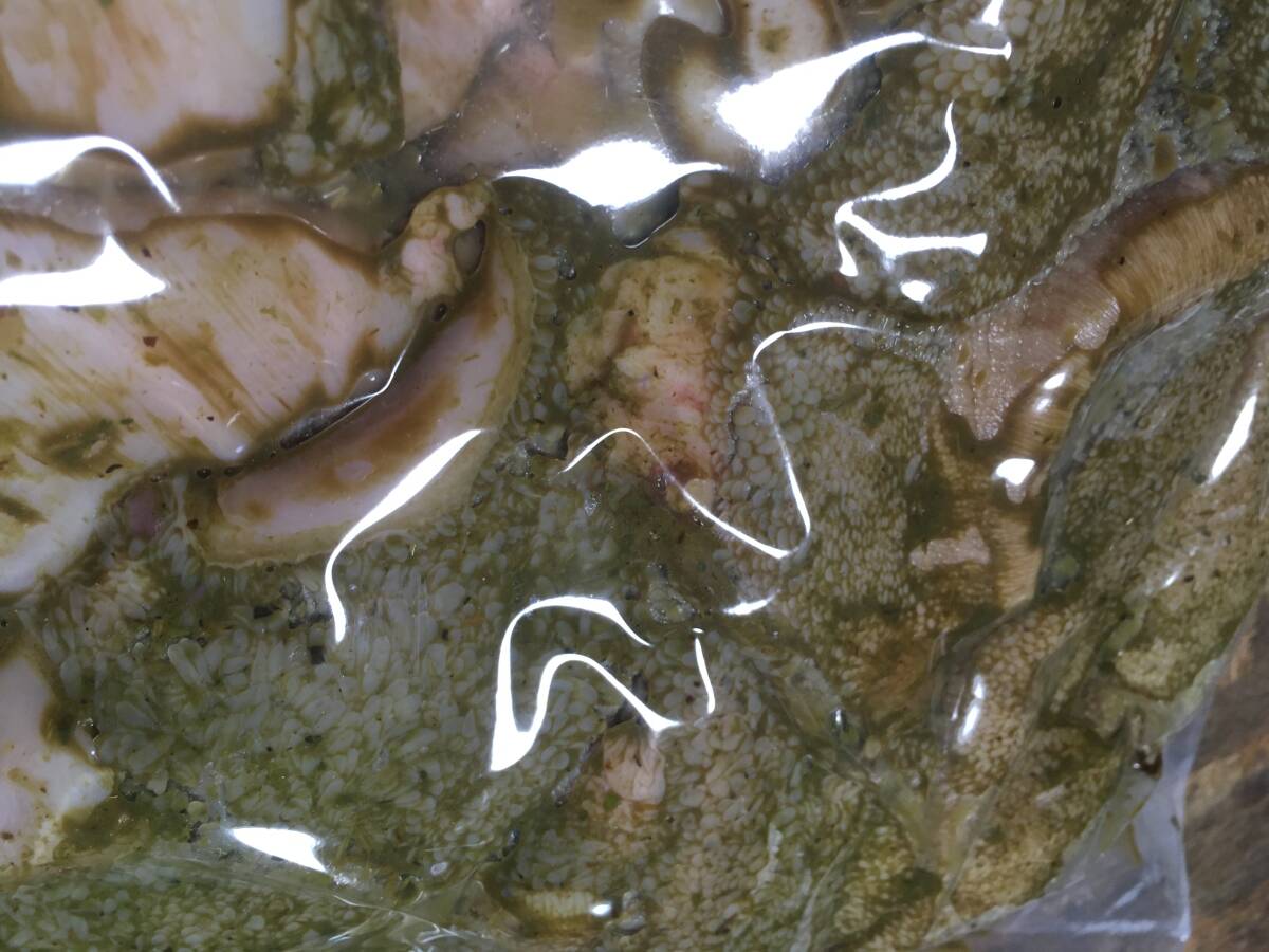 新鮮なうちに匂いが漏れないようガスバリア真空パックで冷凍しています。