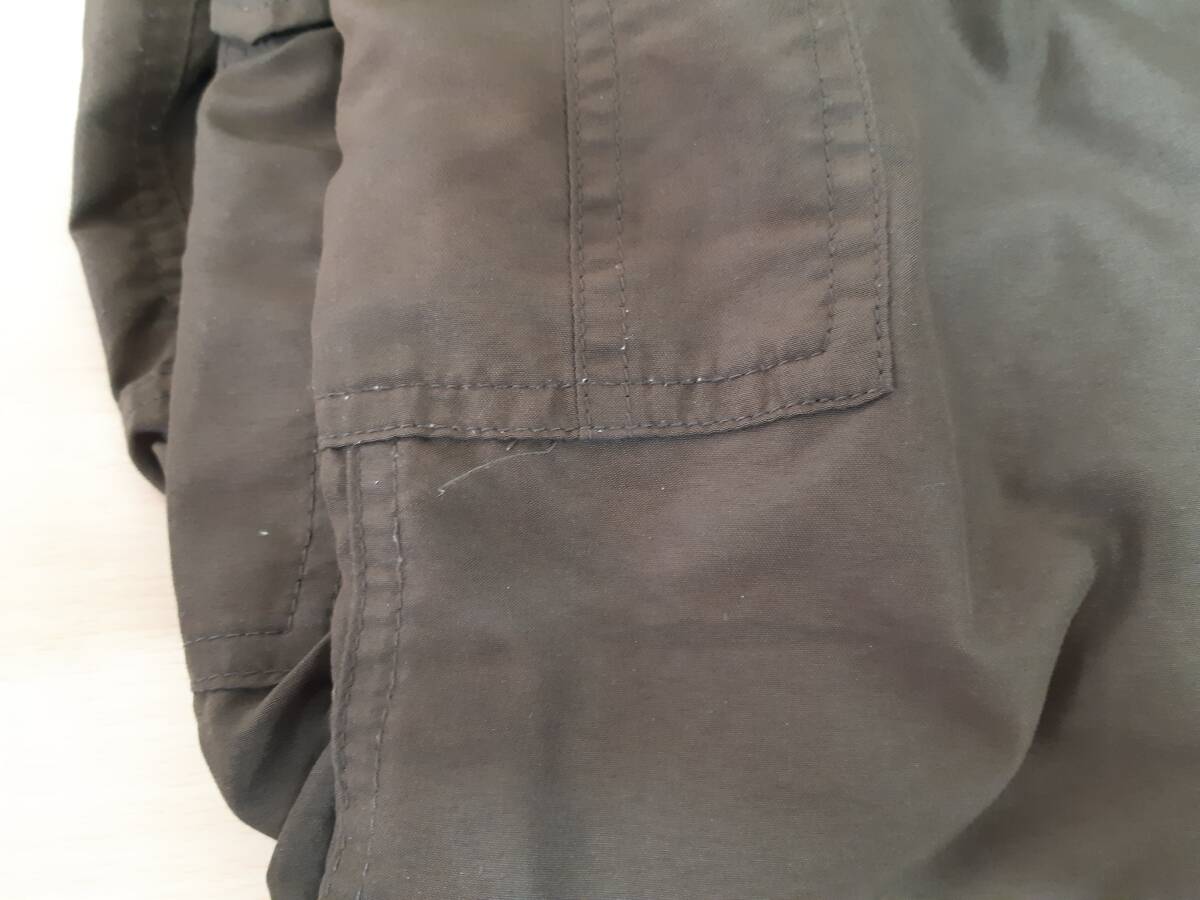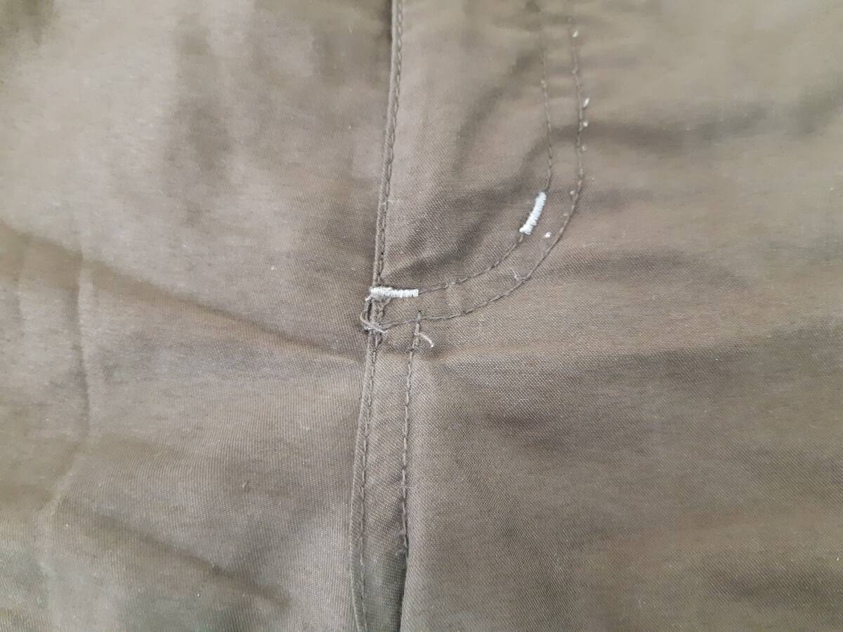 太もも外側付近に糸のほつれ、全体的に色落ちが見られました。