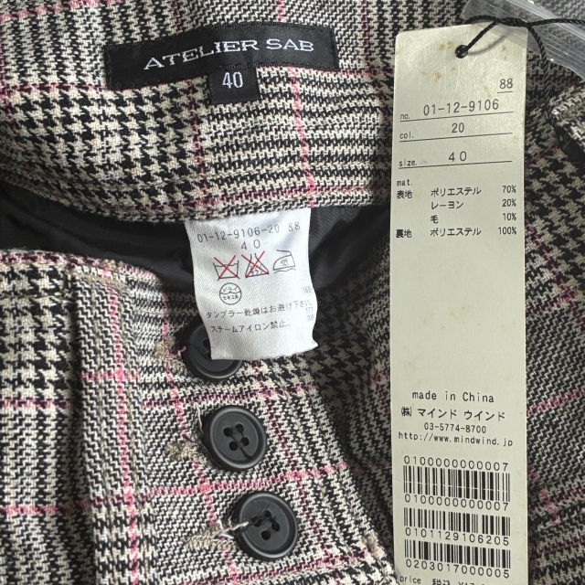 C34◇ATELIER SAB | アトリエサブ ワイドパンツ グレー×ピンク×ベージュ レディース 40サイズ 中古品