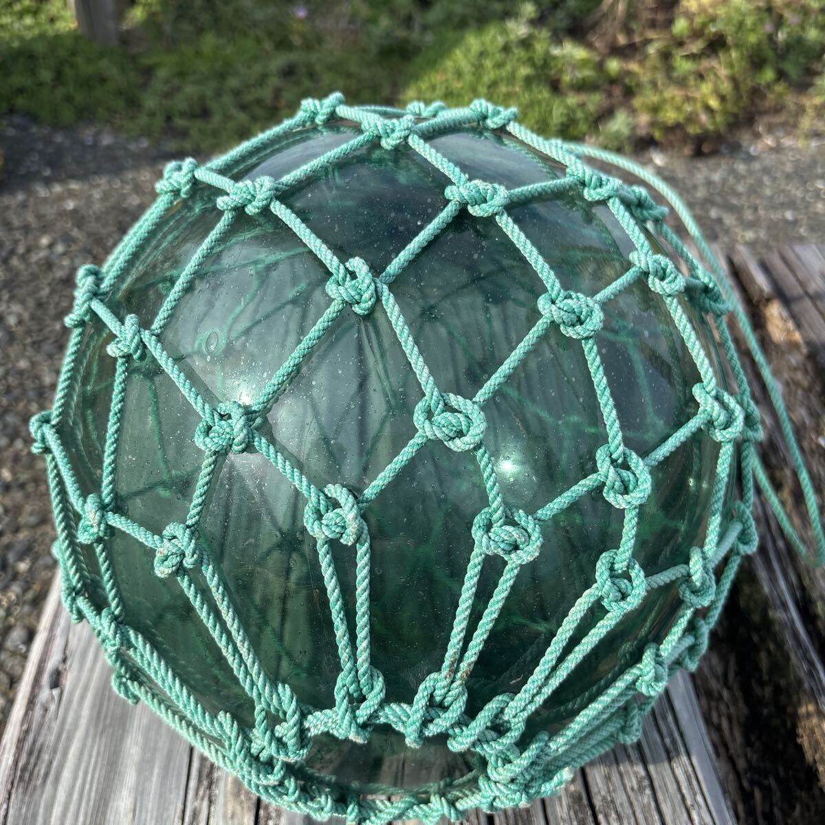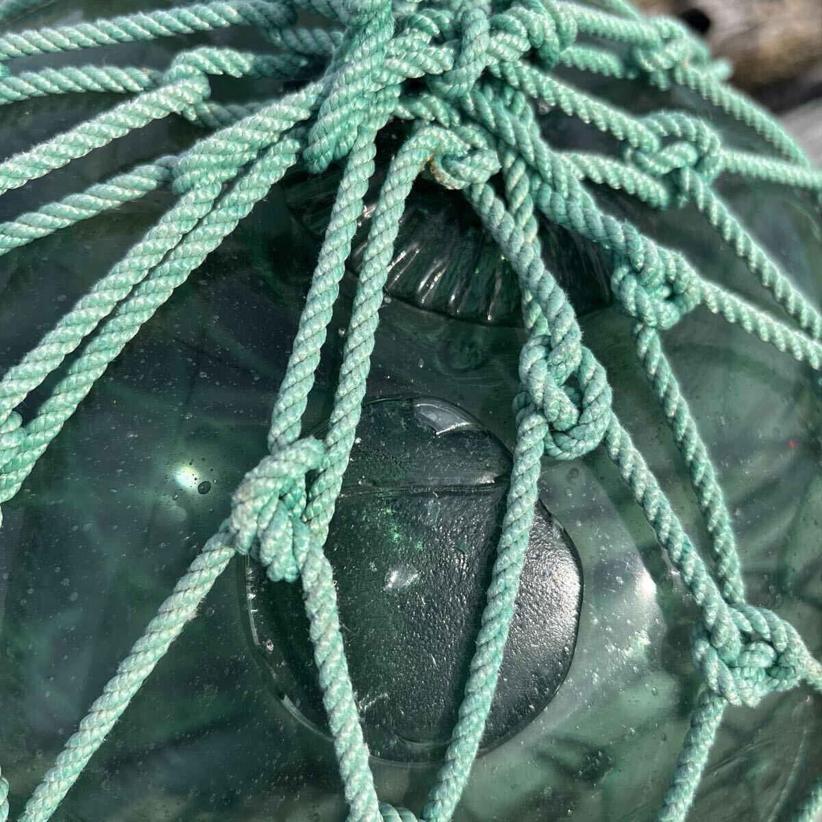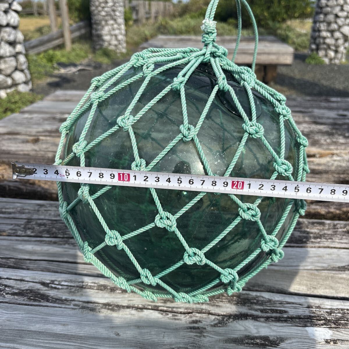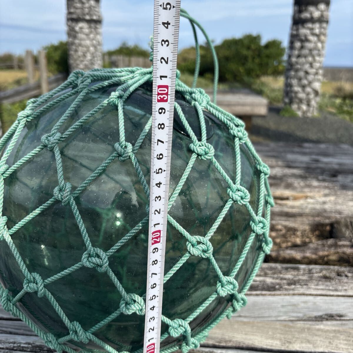 こちら昔漁師さんが使っていた瓶玉です。ギザギザヘソと濃いグリーンの鮮やかな直径30センチ編み付き、気泡ありです。画像よりご確認の上ノーリスクノーリターンでのお取引宜しくお願い致します。重量約3.9キロと重みのある品です。ギザヘソ横にもヘソの様なマルがあります。インテリアにいかがでしょうか