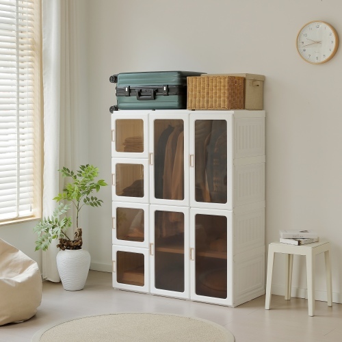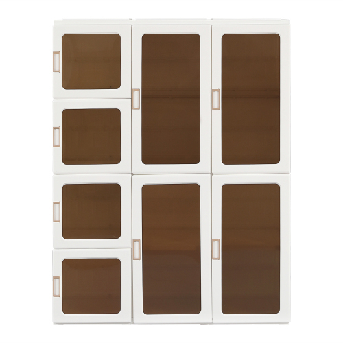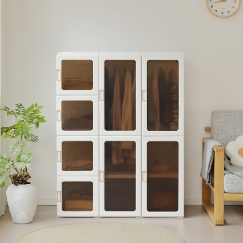 • 【選べる2カラー】●透明アンバー+ホワイト ●ホワイト 【選べる3サイズ】● 5段x3列(3ハンガー) 幅104x高さ170cm ●4段x3列(2ハンガー)幅104x高さ136cm※上部2段可動棚 ●5段x2列(1ハンガー)幅69x高さ170cm※上部3段可動棚