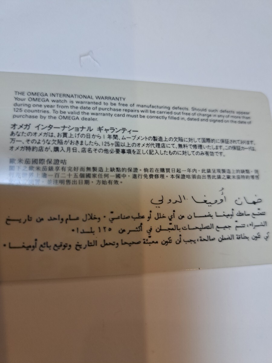 数年前の『OMEGA(オメガ) 腕時計の未発行・保証書(INTERNATIONAL WARRANTY)』です・・・正規輸入品についていました