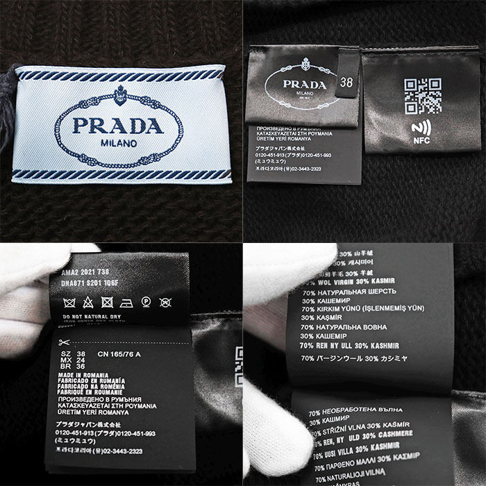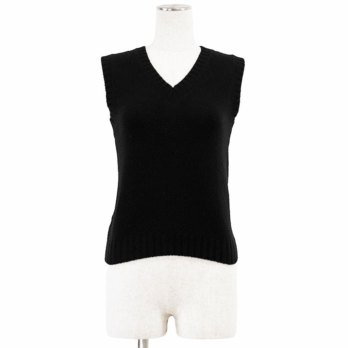 シリーズPRADA プラダ ベスト ニット ウール / カシミヤ 2021年製 ミドルゲージ Vネック プルオーバー レディース 38 黒 ルーマニア製