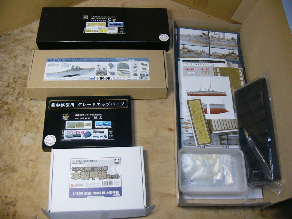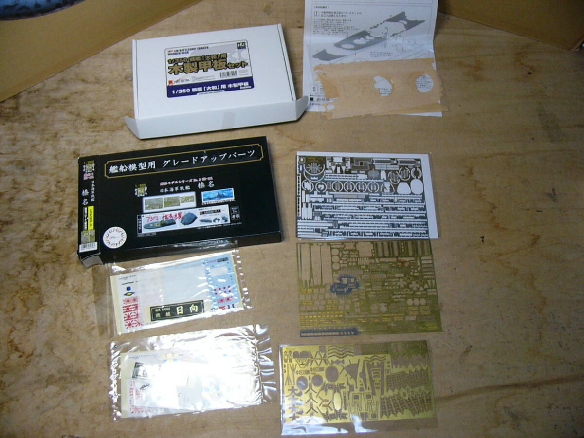 ジャンク品 1/350 戦艦大和用 木製甲板セット ディティールアップセット 榛名 加賀 グレードアップパーツ 他
