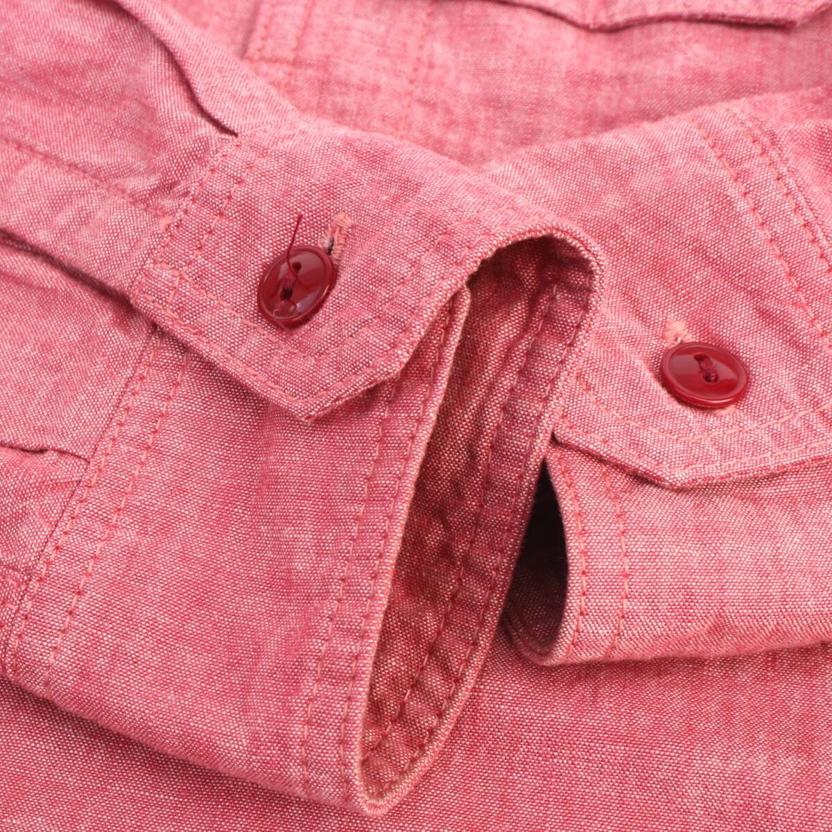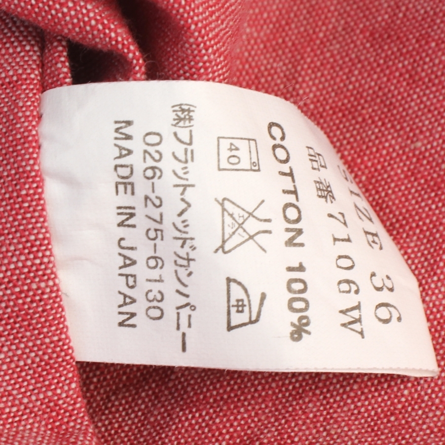 (61128)良品FLATHEADフラットヘッド7106Wシャンブレーシャツ36(S) (ワークシャツ 赤 レッド ピンク オールド ヴィンテージ復刻 長袖シャツ)