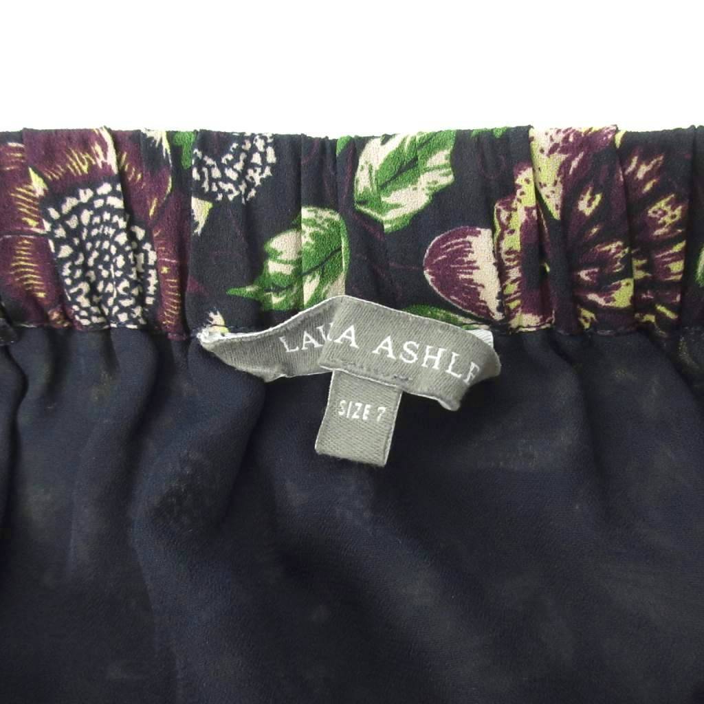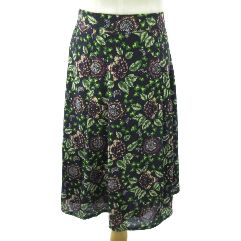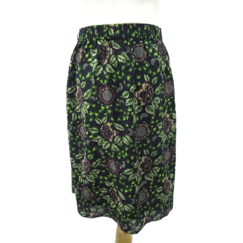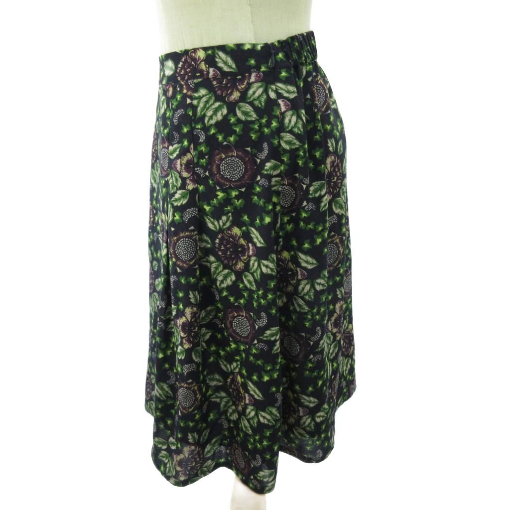 ローラアシュレイ LAURA ASHLEY 美品 スカート 花柄 ひざ丈 7 紺 緑 ネイビー グリーン 0924 ■YHS4 レディース