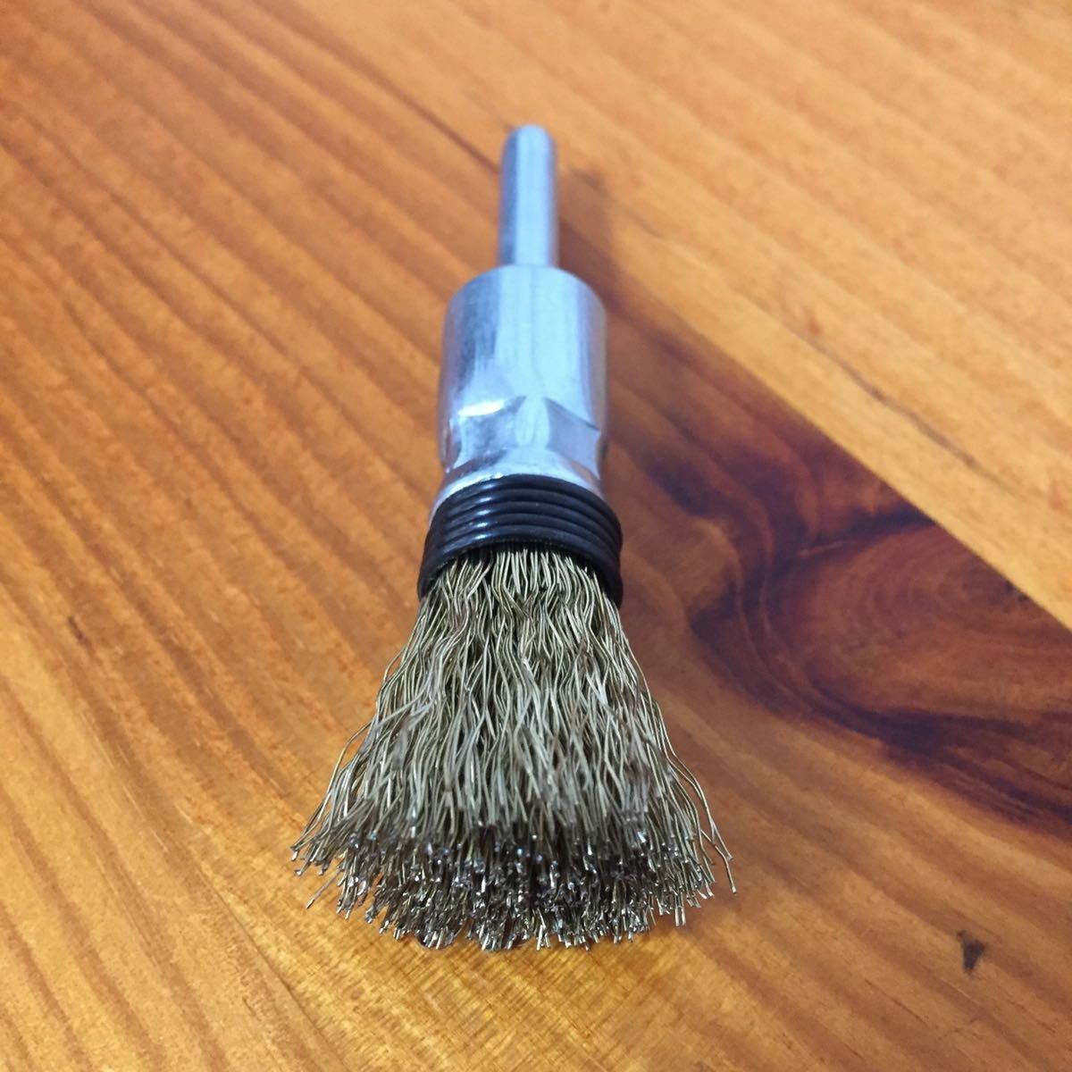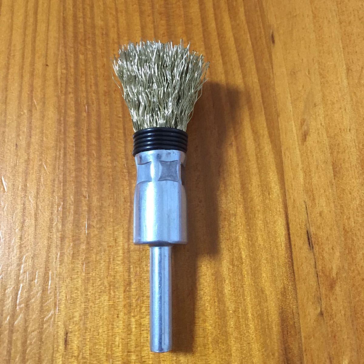 狭いところや、コーナー部分の研磨に大活躍の 軸付筒型ブラシです。 ワイヤー線材の根元にスプリングが装着されていますので、スプリングの弾性効果より適度にワイヤーが回転時に広がり、アクティブに動きとても効果的な研磨作業が出来ます!