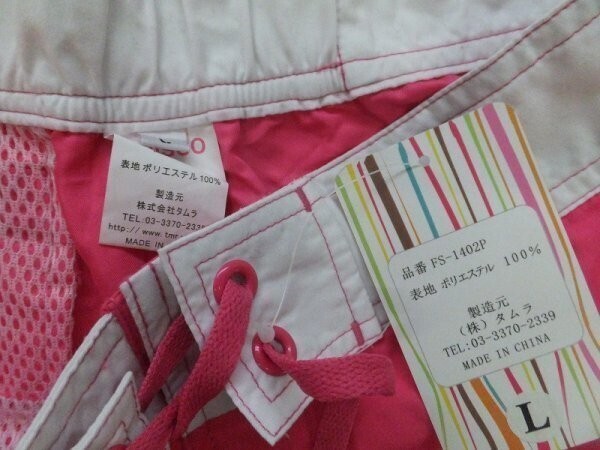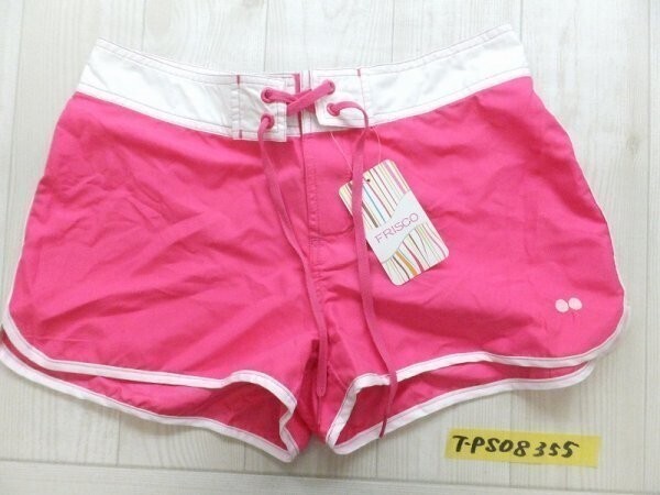 新品!FRISCO レディース ワンポイント刺繍 スイムショートパンツ 水着 L ネオンピンク白 です。
