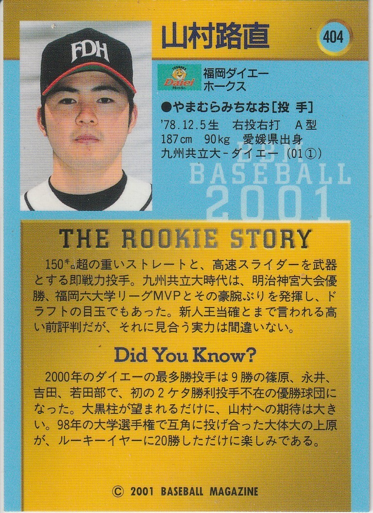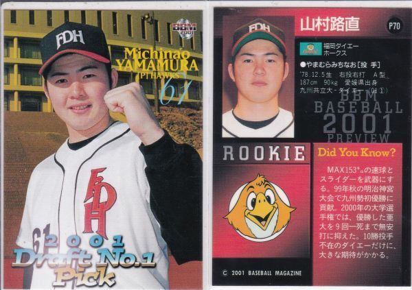 ★2001BBM/Preview/1st【山村 路直】ルーキーカード 2種 No.P70,404:Hawks R2