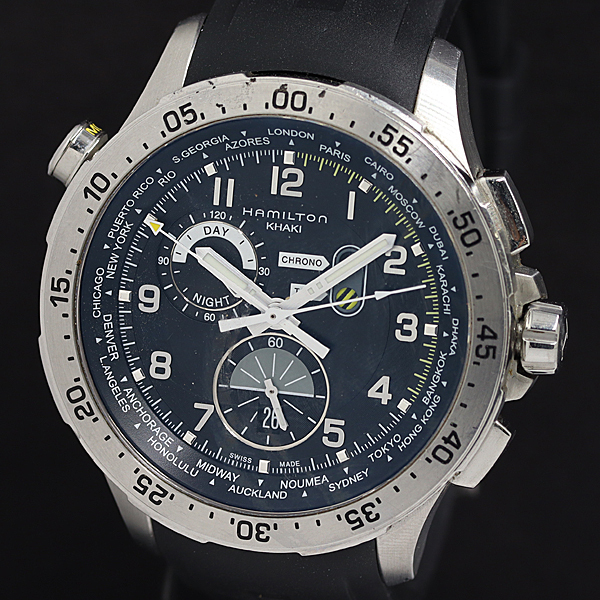 1円 稼働 ハミルトン カーキ クロノグラフ H747140 QZ ブラック文字盤 メンズ腕時計 0801300 9YBT SMZ