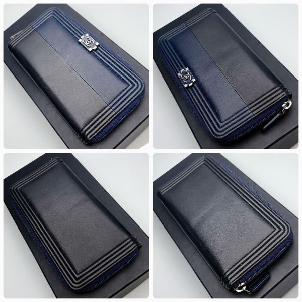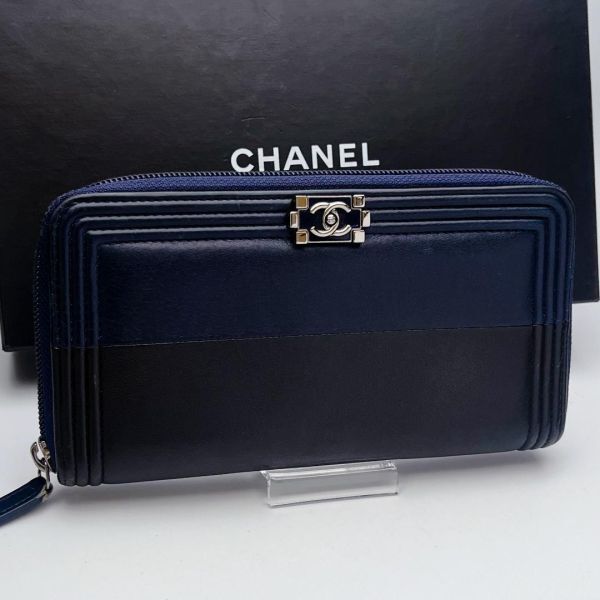 『ボーイシャネル バイカラー紺×黒 ラウンドジップ ウォレット』