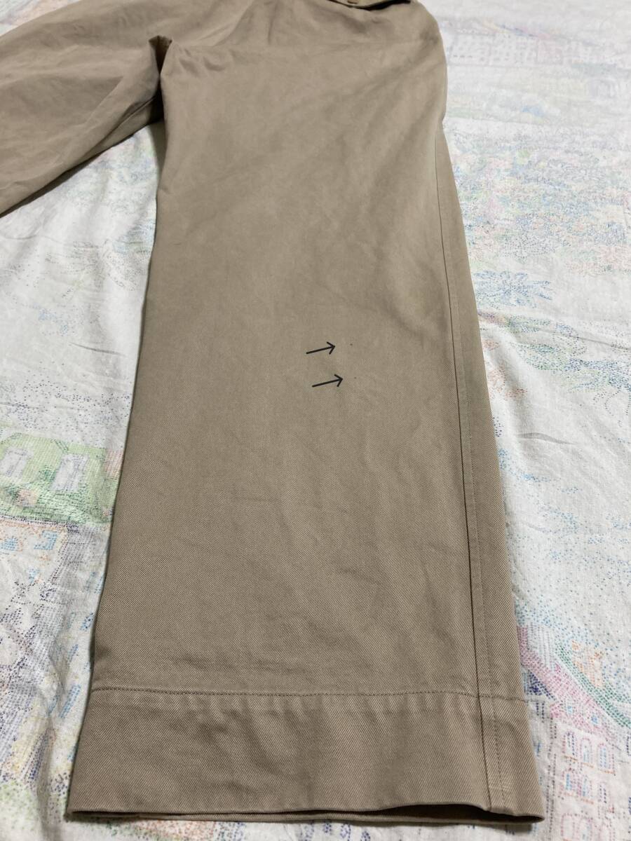 裾を洗濯ばさみで挟んで乾かしたために、跡があります