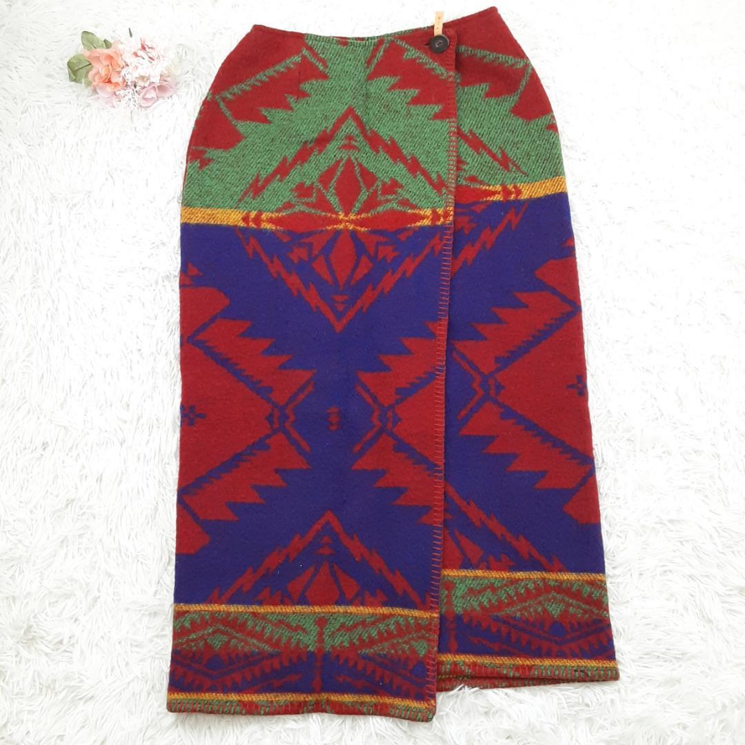美品◎Ralph Lauren County ラルフローレンカントリー ラップスカート ロングスカート マルチカラー 多彩色 ネイティブ柄 ウール100% MADE IN USA USA製 アメリカ製 80s 80's 90s 90's ヴィンテージ ビンテージ vintage