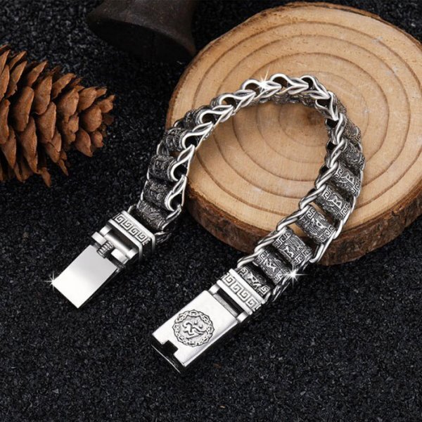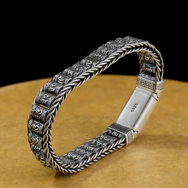 六字真言の回転ブレスレットになります(文字部分が回転します)。 洗練されたデザインと力強い存在感は普段使いでもフォーマルでも活躍間違いなし! 六字真言とは「オン・マ・ニ・パド・メ・フン」の六字からなっています。 観世音菩薩の慈悲を表現した真言であるため観音六字とも呼ばれています。 チベットでは、観世音菩薩と観音六字が一体と考えられており、それを唱えることで災いから護ってもらえると考えられています! 新品未使用品 <商品仕様について> ■ 素材 :SILVER925(シルバーメッキ加工) ■ 長さ : 約22㎝(20㎝の商品も出品しております。) ※こちらの商品はノーブランド品になります。 ※新品・未使用ですが、製造過程における細かなキズ等がある場合がございます。素材の特性をご理解の上、ご落札下さい。 他にも出品しております。よろしければご覧ください。 よろしくお願いいたします。 | |||