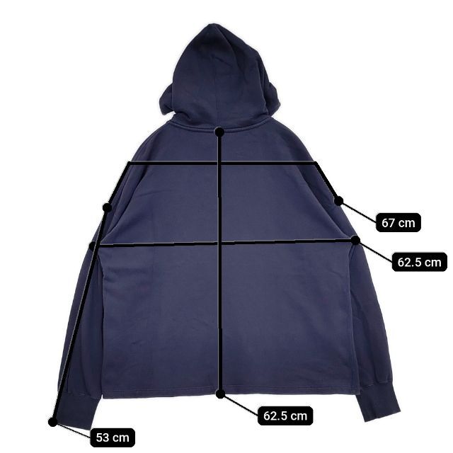 実寸サイズ | 肩幅:約67cm 着丈:約62.5cm 身幅:約62.5cm 袖丈:約53cm ※採寸画像がある商品はハンガーに吊るした状態での計測のため、平置きでの採寸とは差が生じる場合がございます。平置きでの実寸サイズをご希望の場合は、ご購入前に必ずご質問ください。 ※記載以外のサイズが合わないことを理由とした返品はできませんので、 記載部分以外で実寸サイズの気になる箇所があれば必ず購入前にご質問ください。 |