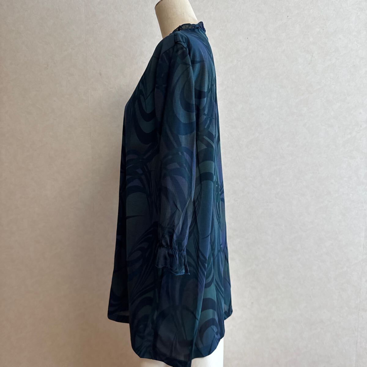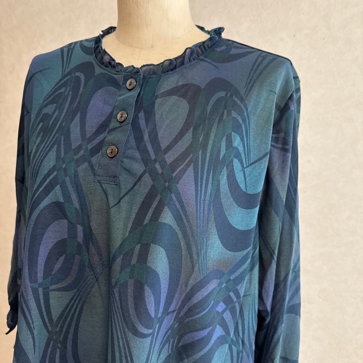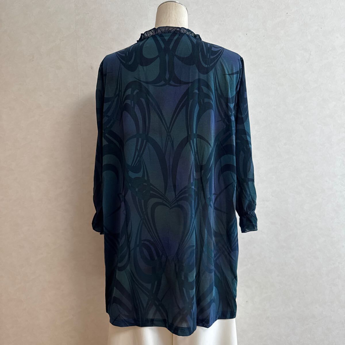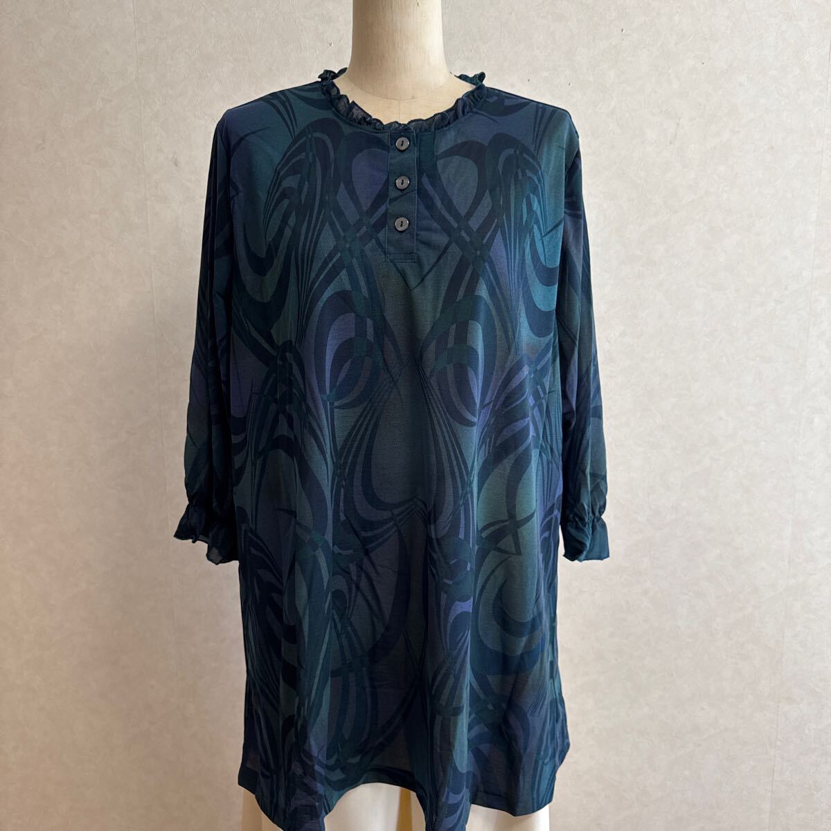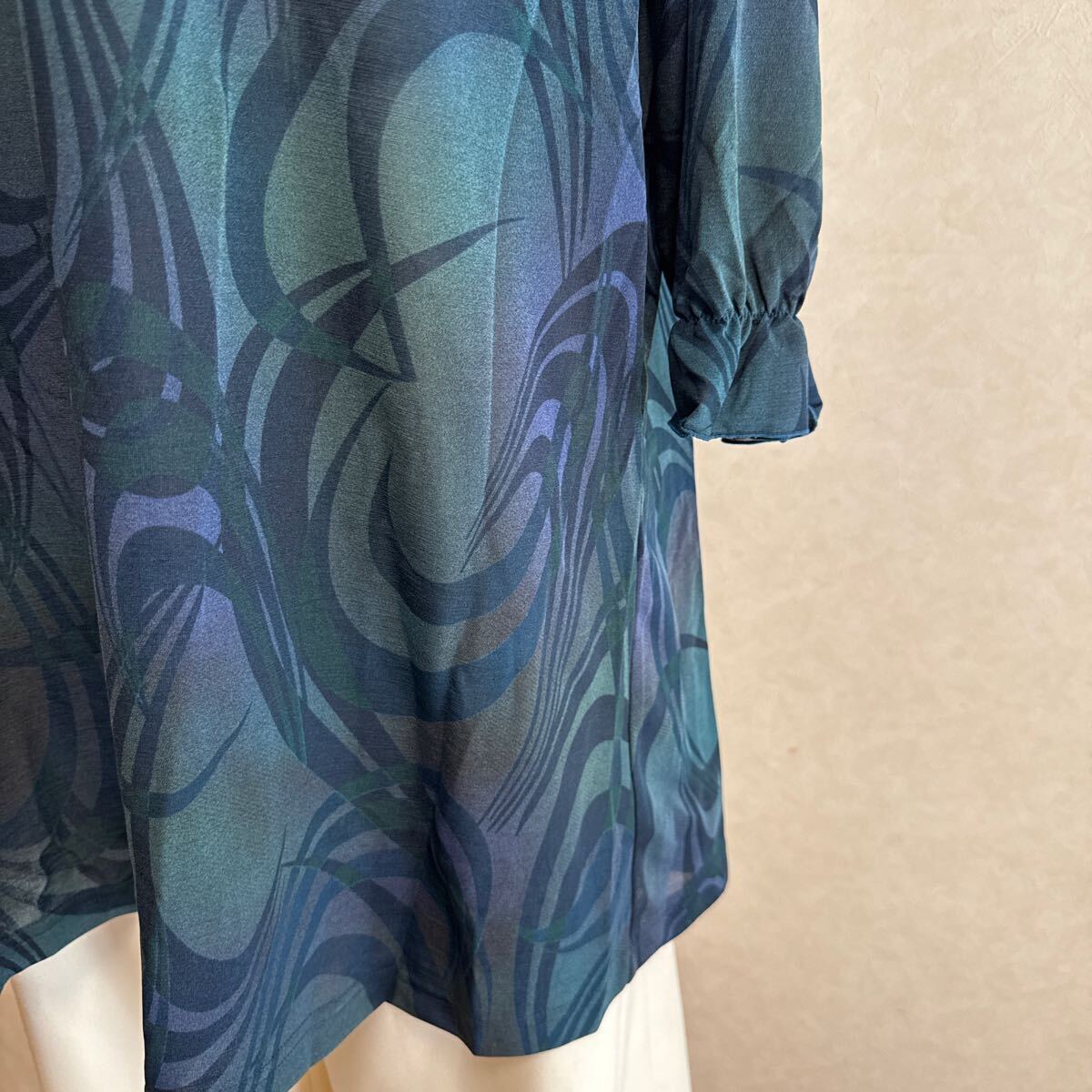 KN2982*4L 大きいサイズ プリントチュニック 七分袖 ブラウス