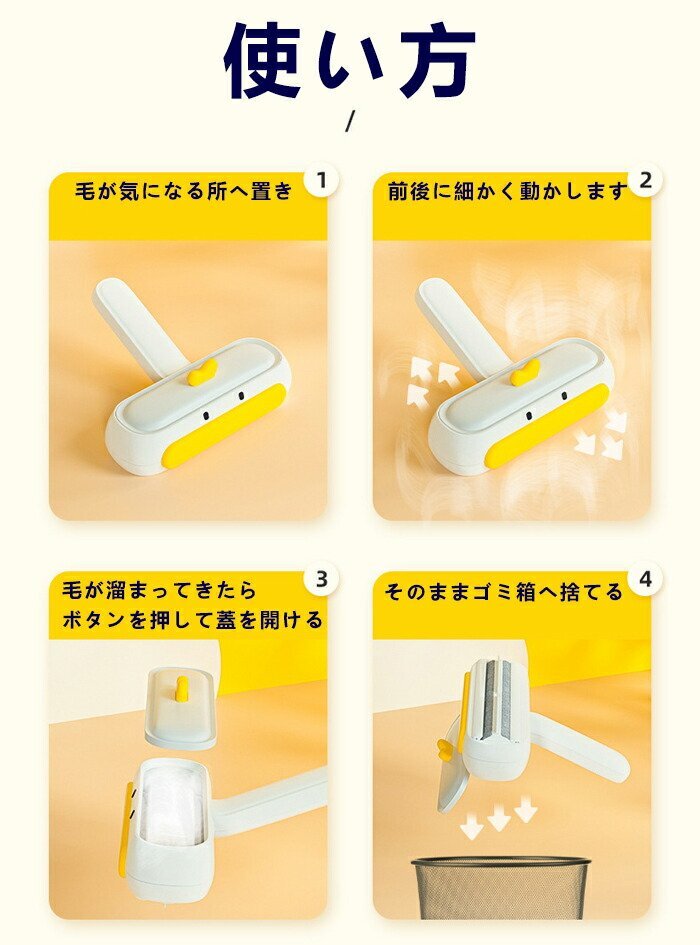 なかなか取れないラグマット、布団、ベット、ソファ等の場所についた抜け毛を前後に動かすだけできれいにキャッチするお掃除ハンディクリーナーです。猫の毛や犬の毛を取る毛取り効果だけでなく、カーペットについた綿ほこりや髪の毛にも効果があります。