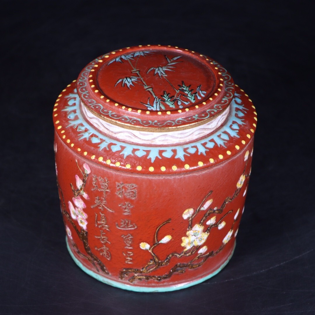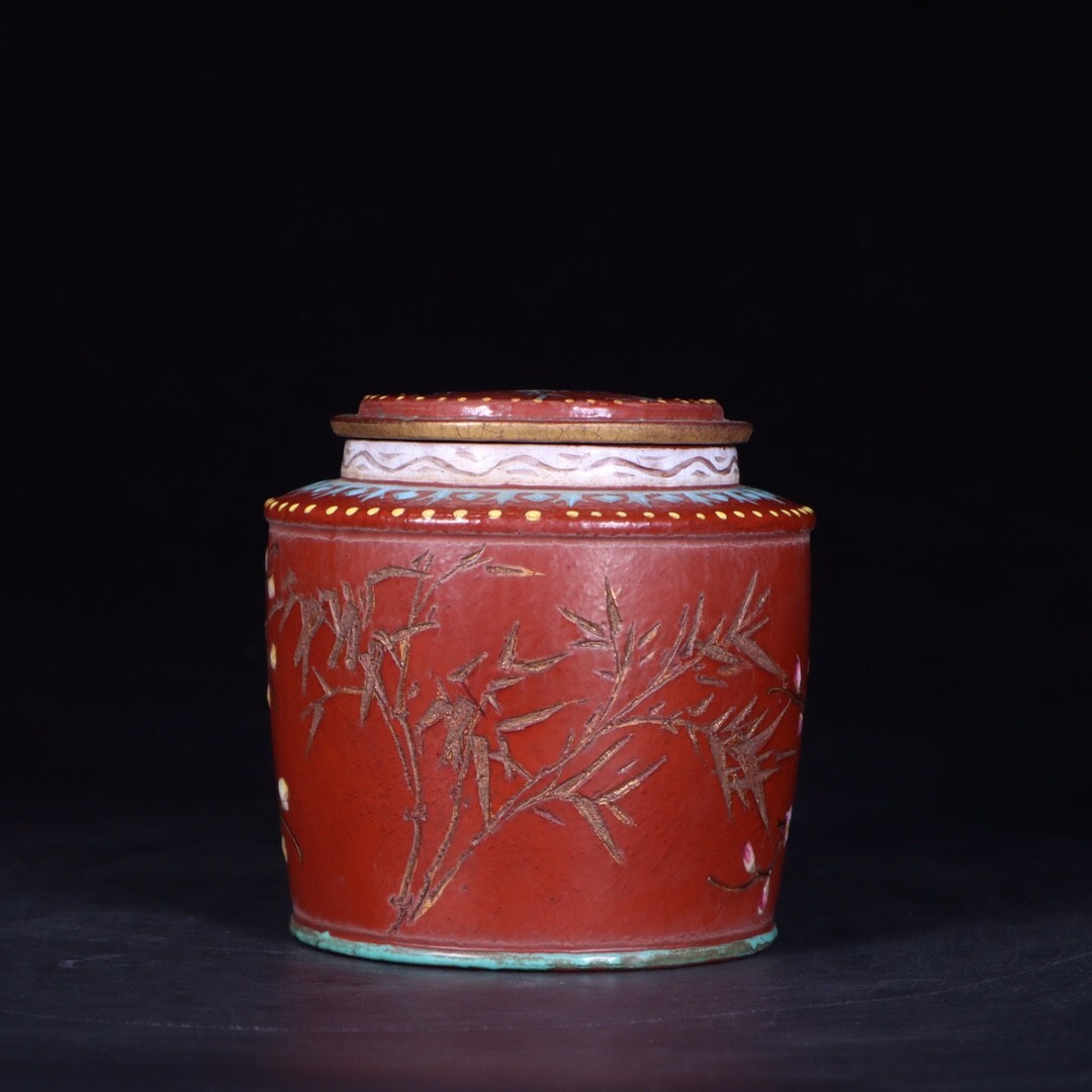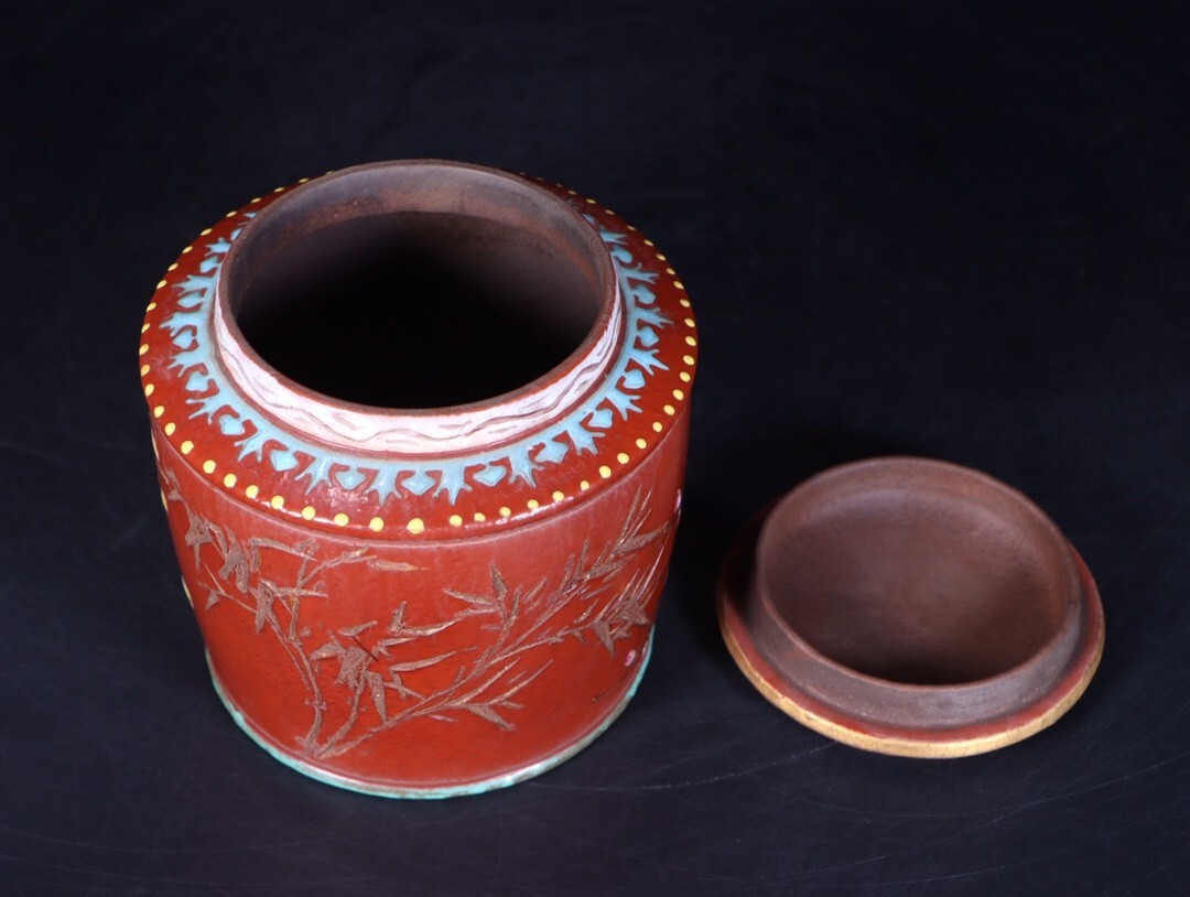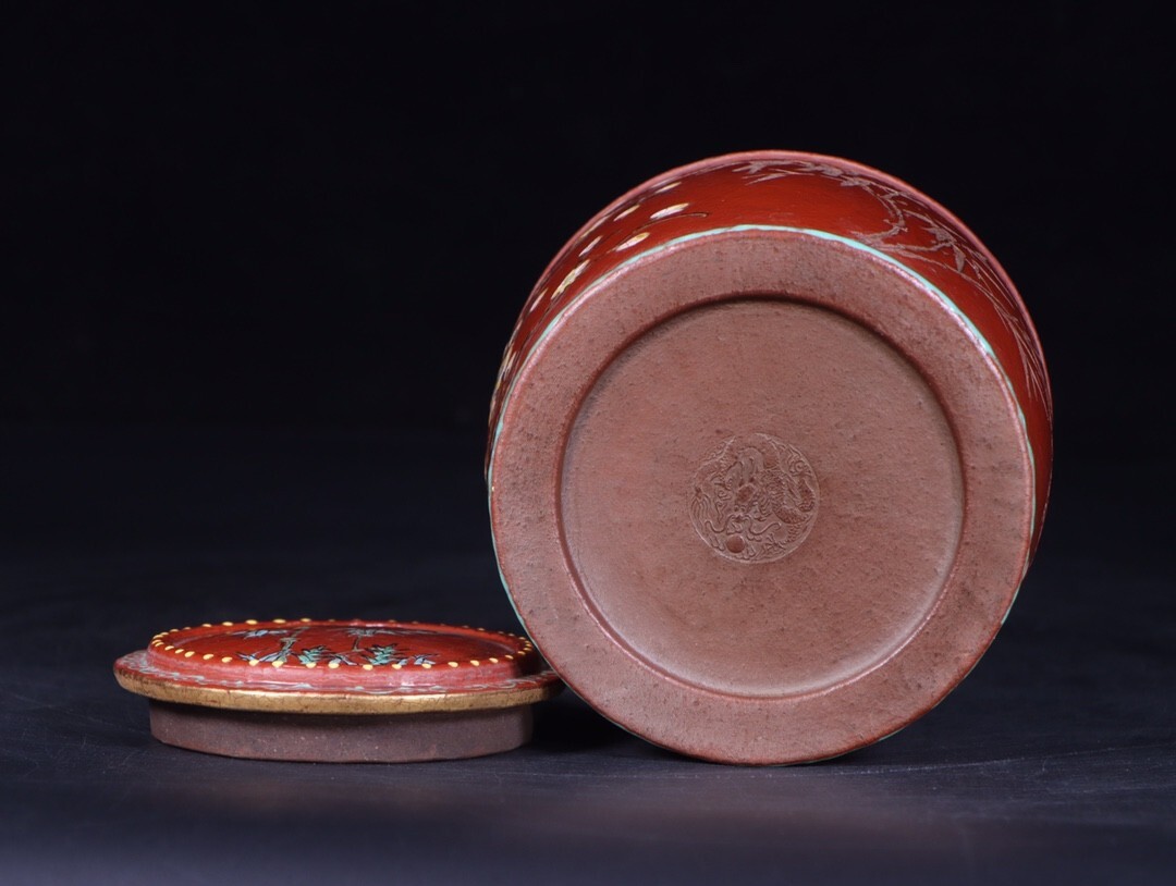 【瓏】紫砂彫 施釉加彩描金 茶葉罐 清時代 中国陶磁器 陶芸 置物擺件 古賞物 古美術 陶芸 蔵出