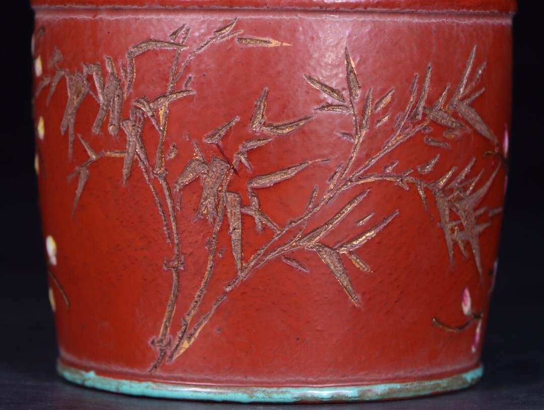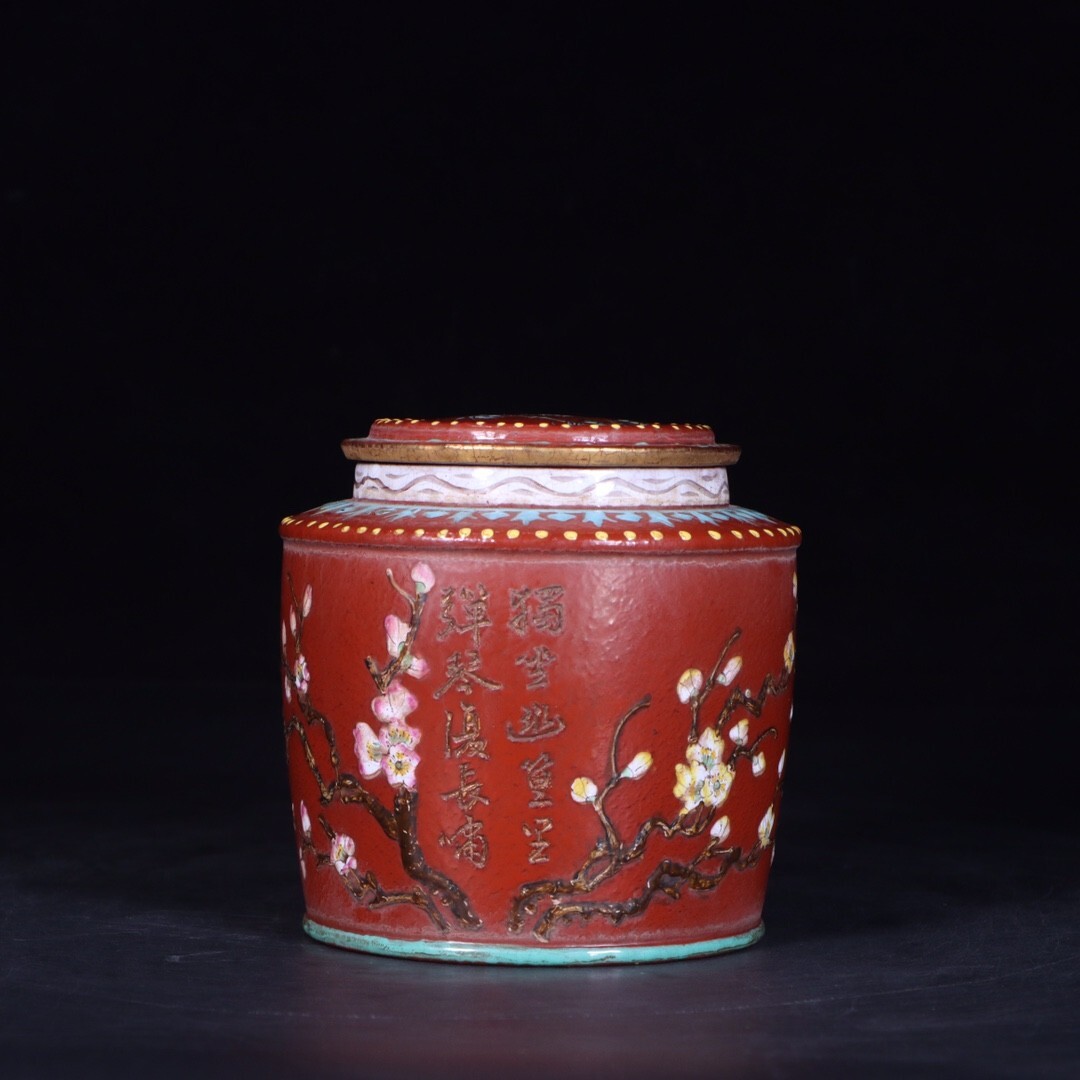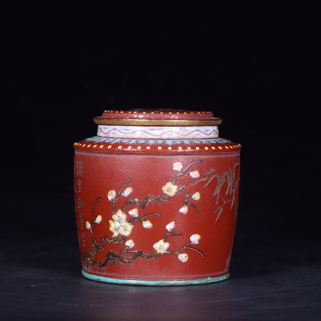 【瓏】紫砂彫 施釉加彩描金 茶葉罐 清時代 中国陶磁器 陶芸 置物擺件 古賞物 古美術 陶芸 蔵出