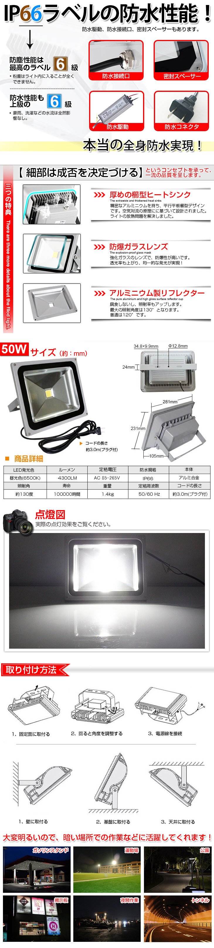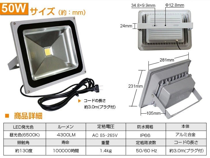 IP66規格の防水仕様!屋内屋外両方ご利用OK!また倉庫用の照明集魚灯看板灯など用途は様々!