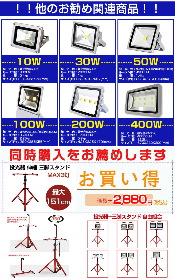 トンネル、掲示板、ガソリンスタンド、夜間作業、現場工事、駐車場、公園、運動場にも様々な場所で活躍します!