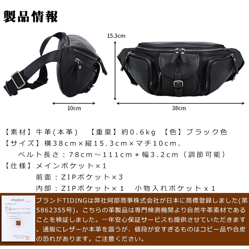 TIDING ポケット多い レディース ボディバッグ メンズ 本革 斜め掛け ワンショルダーバッグ 2WAY ウエストポーチ 黒